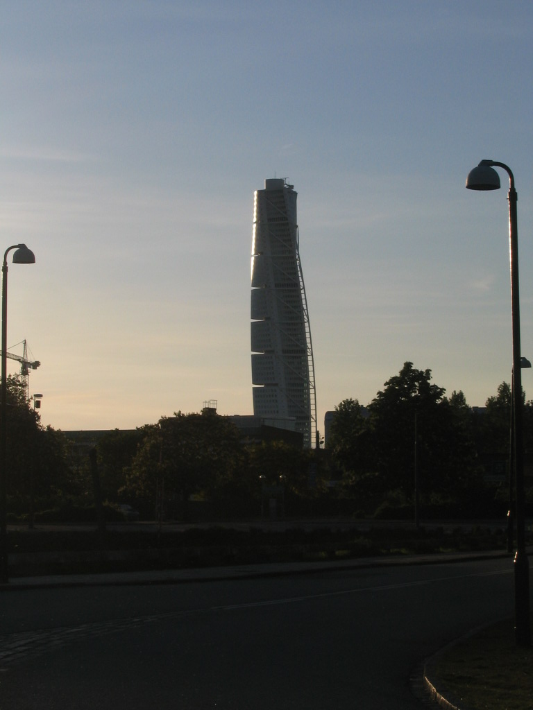 This is the distinctive Turning Torso, a residential tower that is the tallest skyscraper in all of Nordendom, designed by Santiago Calatrava and completed in 2005.
