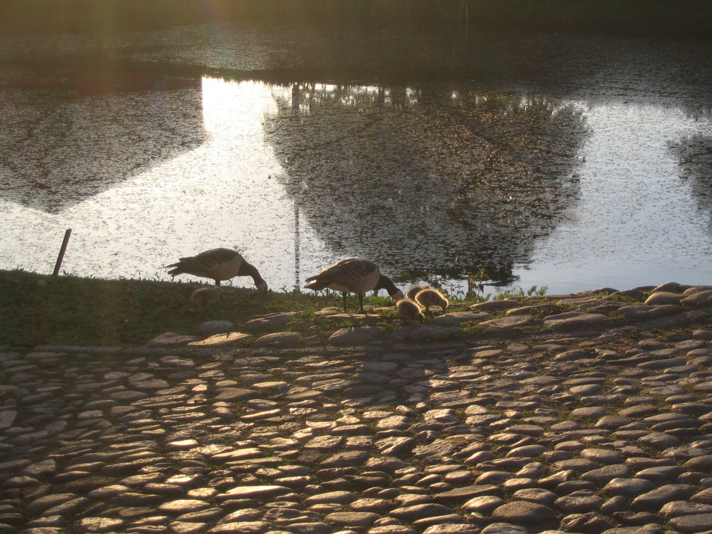 Sunny fuzzies, to distract from the icky water. (At least the texture of the water ick sort of complements the pattern of the cobbles, amirite?)