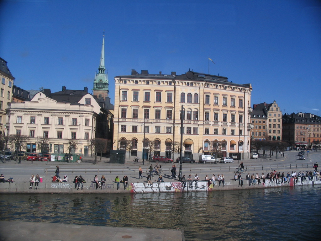 The shore of Gamla Stan (the old city), with more sunbathers.