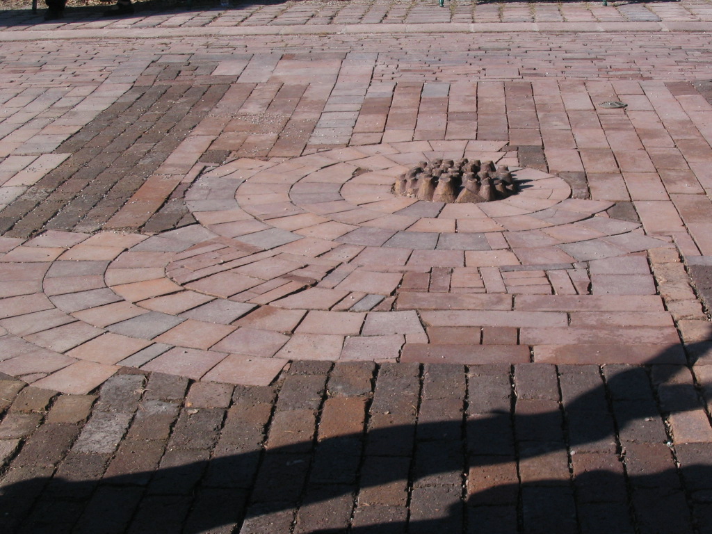 At the center of the two buildings of the parish, uh, center is this linear courtyard.