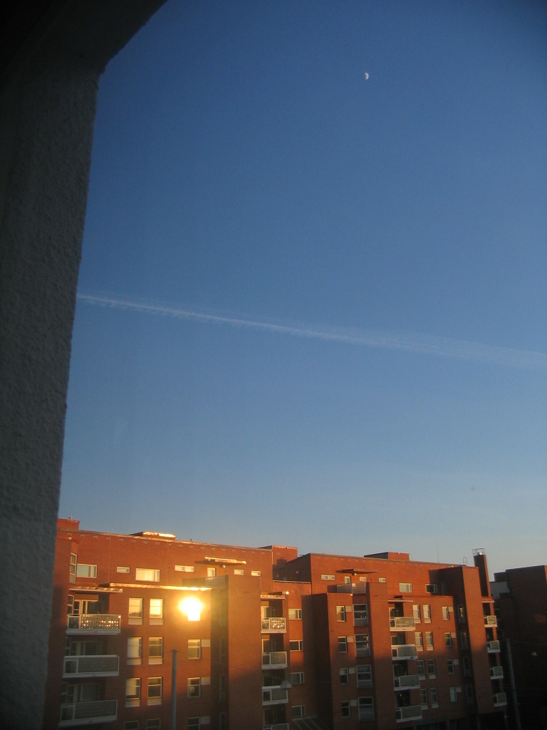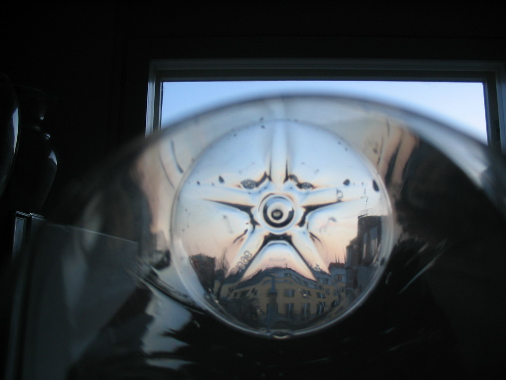 Man, I was addicted to orange soda there, I'd forgotten that until this picture (of an empty bottle of it) reminded me. — Edit 5/23/2023: but the point of this picture was probably the nice sherbet-rainbow sky deformed through the bottle.