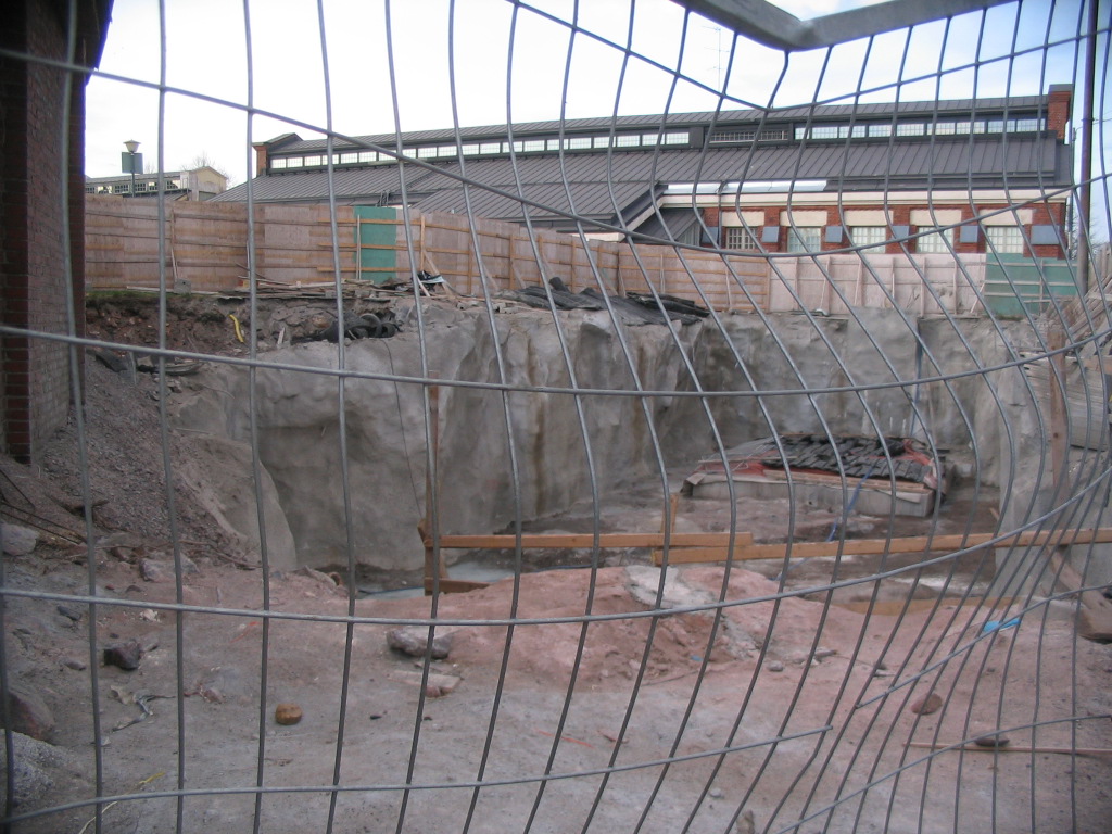 The gunite-covered foundation hole along Merikasarminkatu on the way back to the apartment.