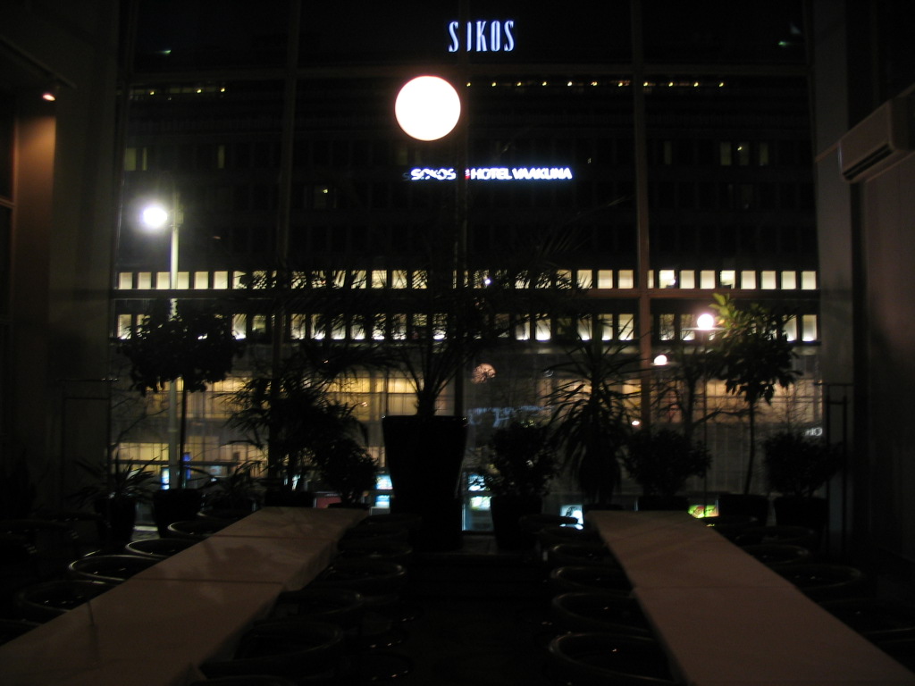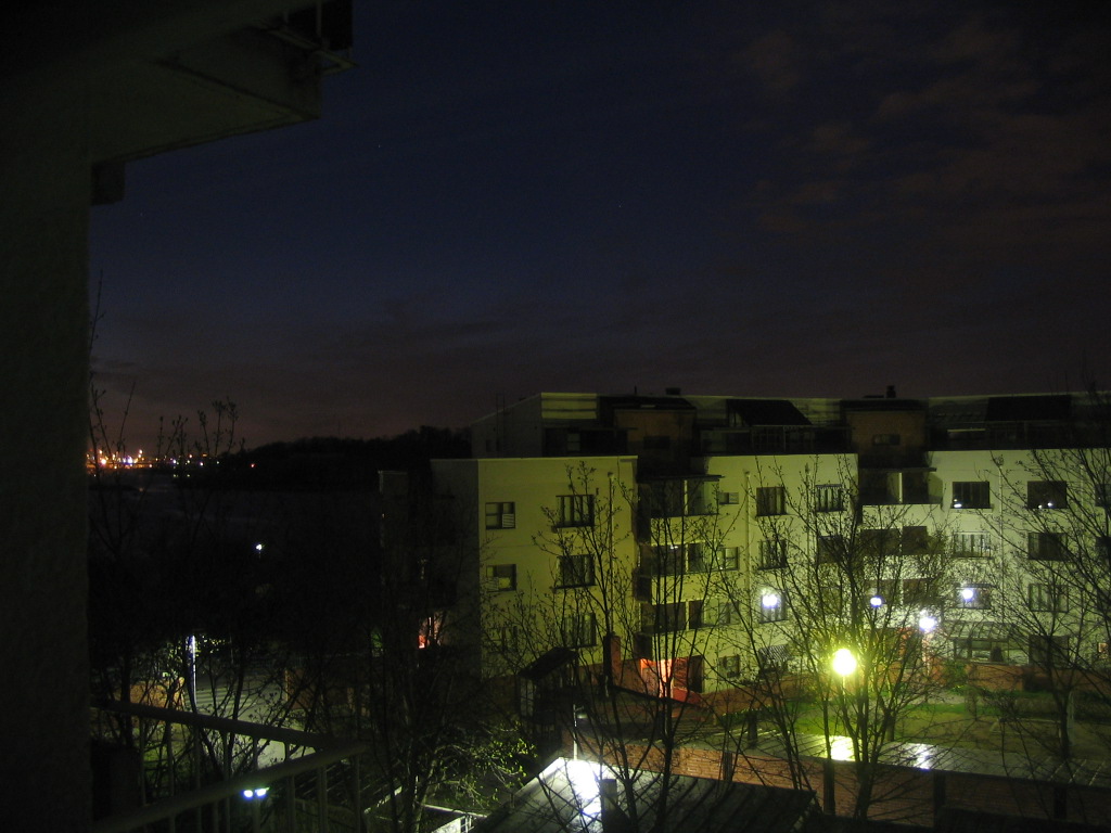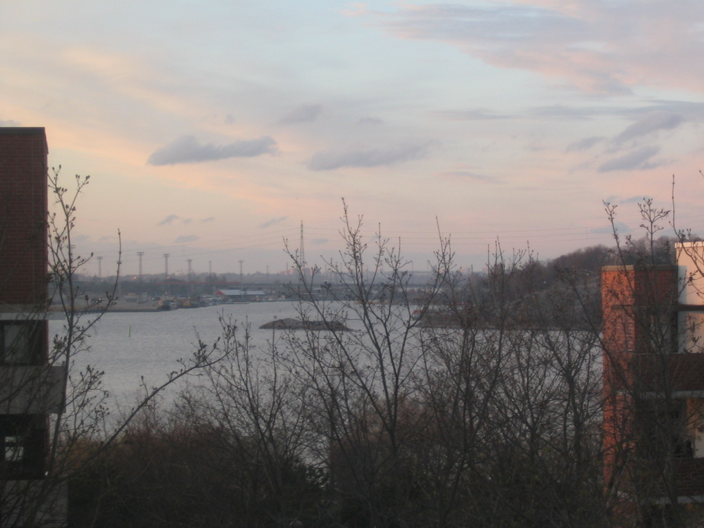 The view from the apartment balcony out toward Korkeasaari and Hanasaari and beyond.