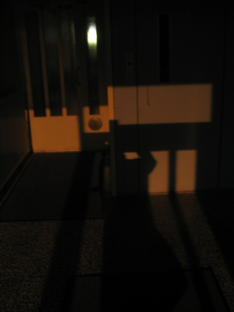 The elevators only had single-layer doors, which is why this one is seen to be descending.