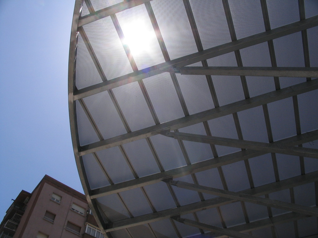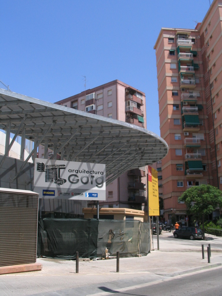 Upon arrival at Llefià: the station's enveloping entry canopy.