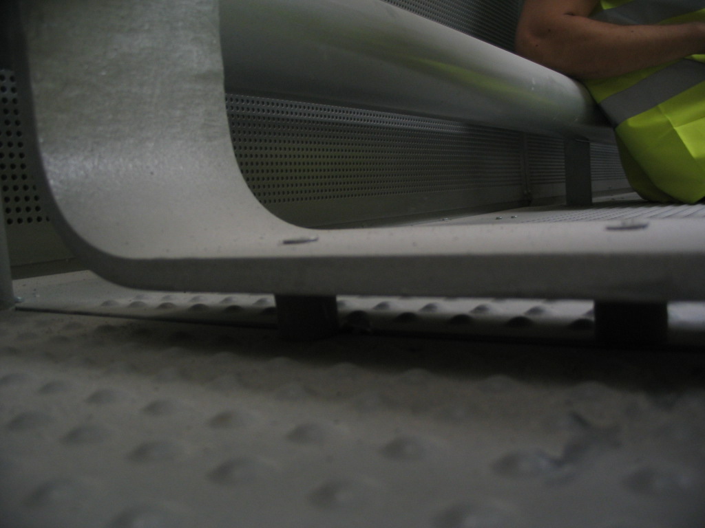 Meanwhile, you can tell that this is the inside of the train itself, since the slats are running the other way.
