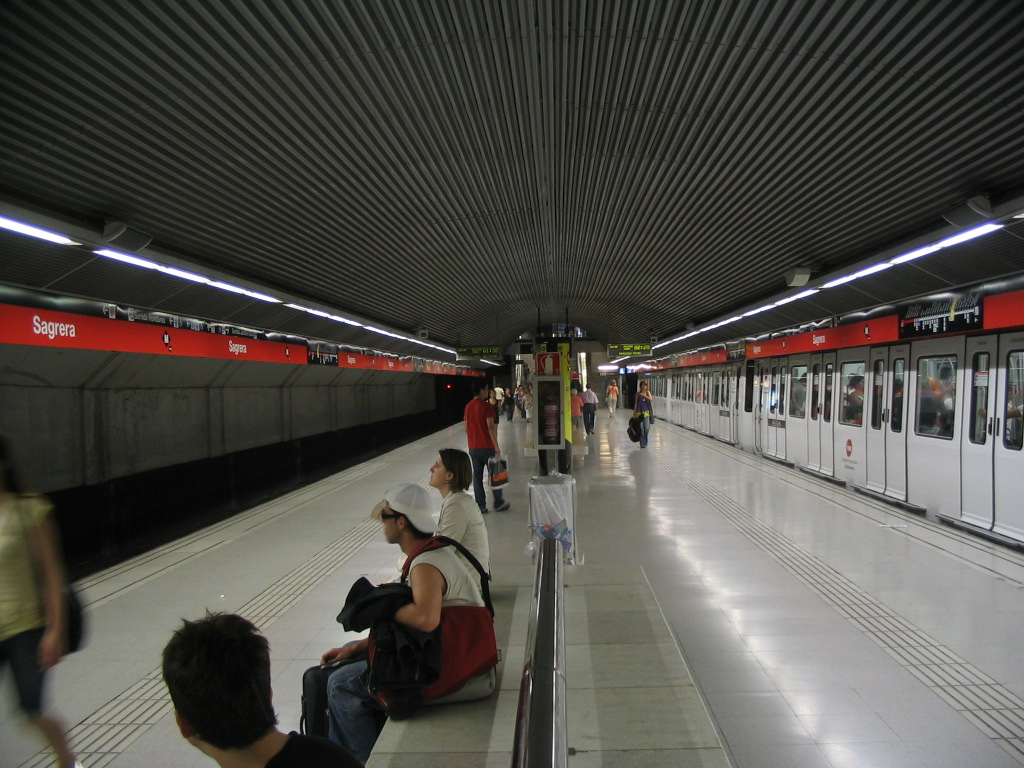 Because the station serves an area well upslope from the sea, whereas the Metro was originally built for the areas of the city near sea level, its platforms are deep underground to prevent the trains from having to climb excessively. Here, a view all the way down.