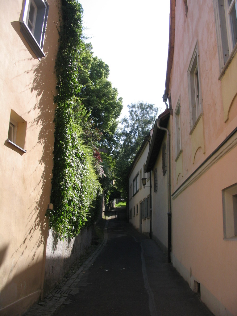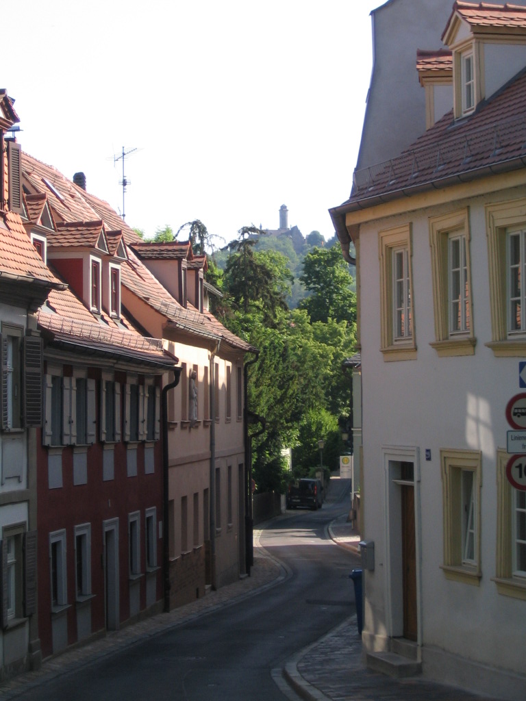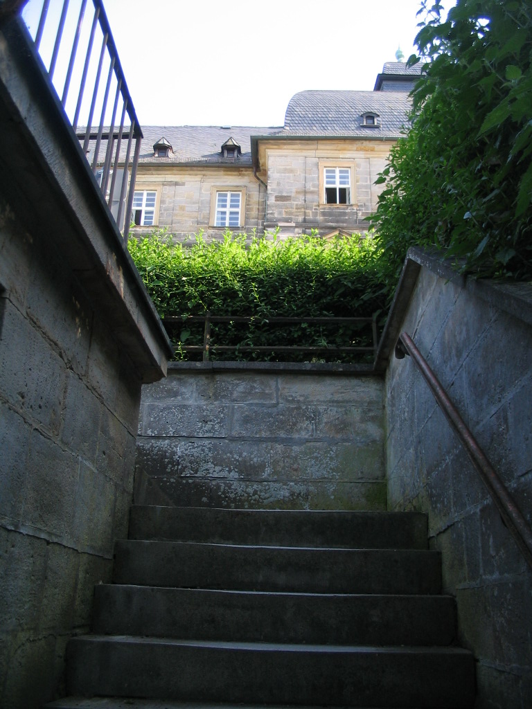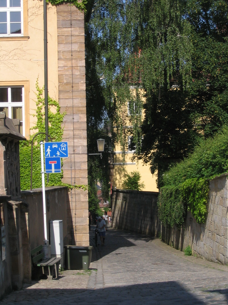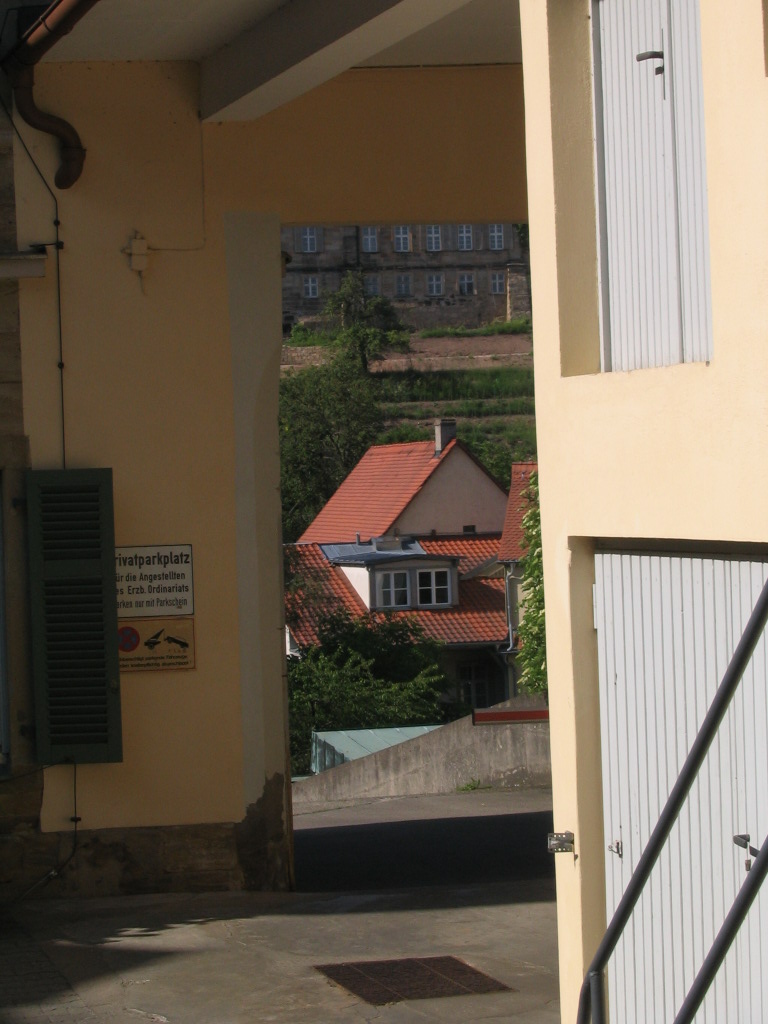Through this curious aperture near Jakobsplatz is a secret view of Michelsberg and its steep front slope.