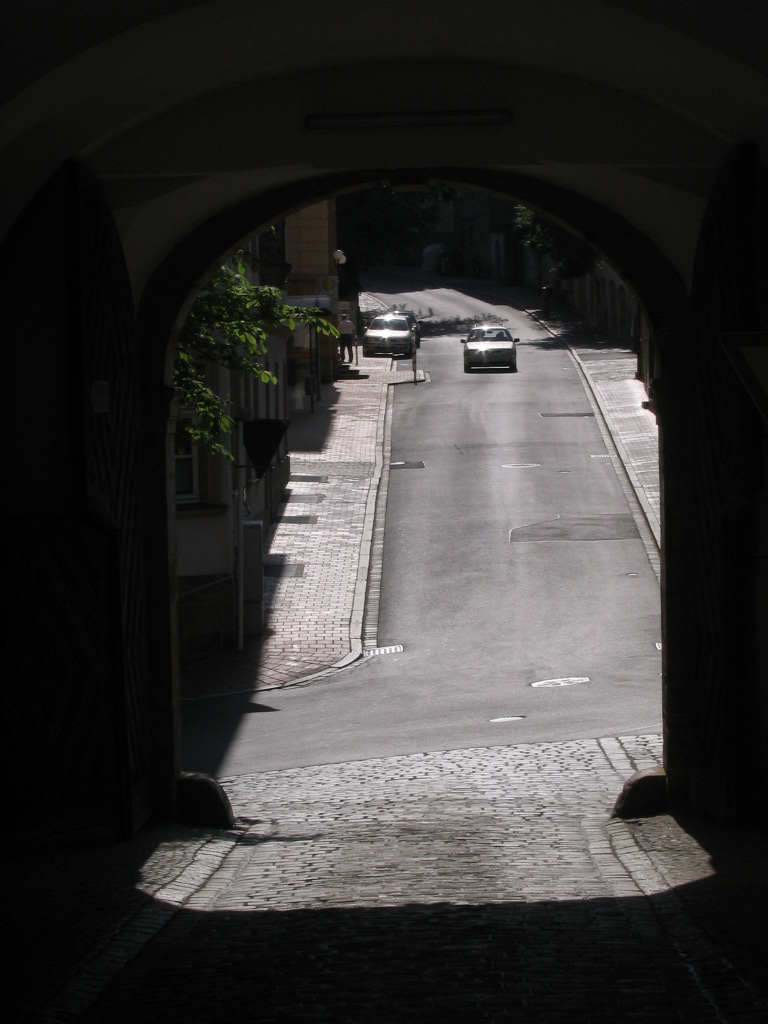 The entrance was through another wing of the abbey; this is a view back out, showing the street that leads away to the west, St. Getreu-Straße.