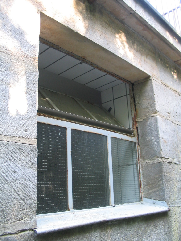 A carved window.