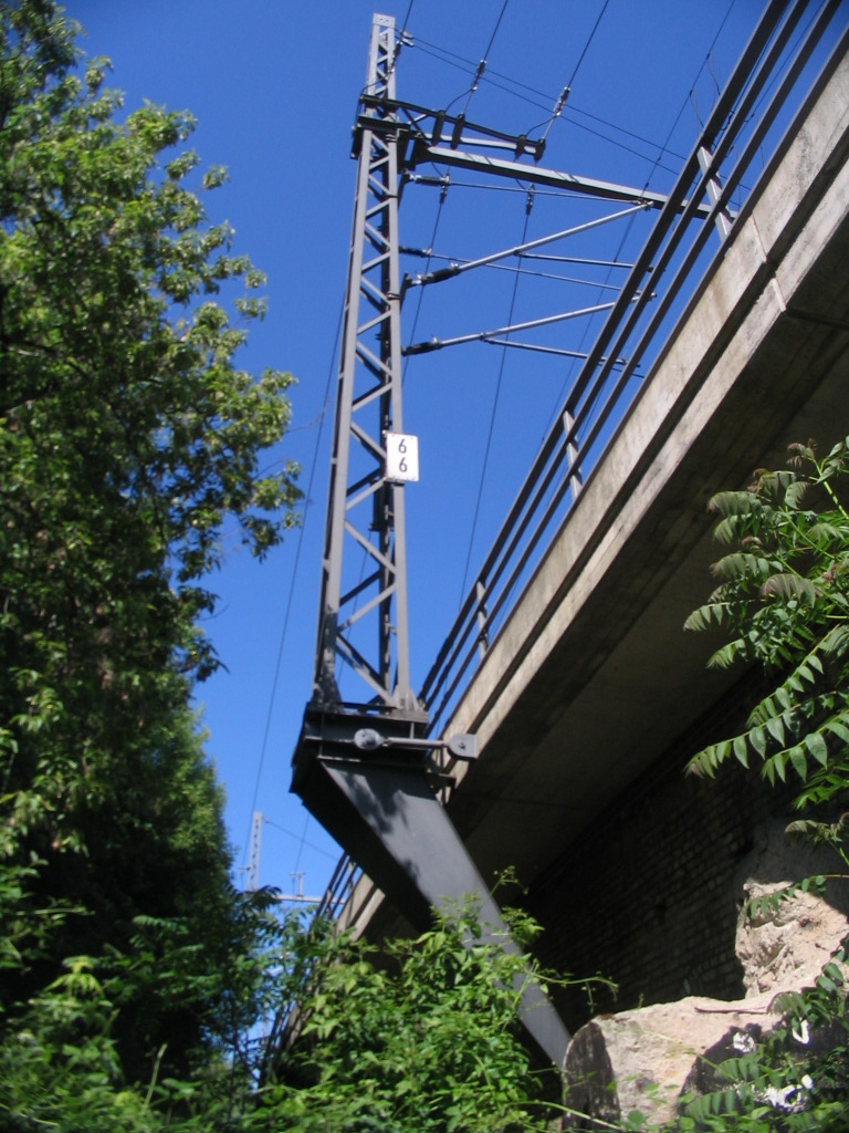 Above the continuation of the same street, here Paulstraße, a pretty neat double-tapering support post for the railroad wires.