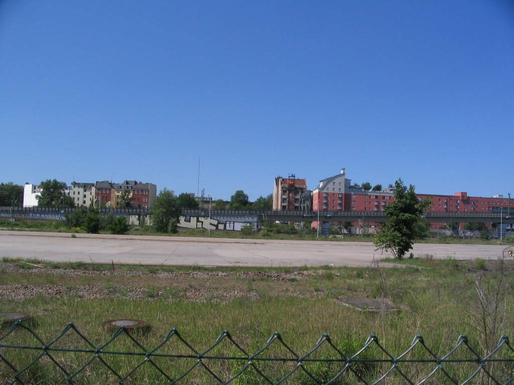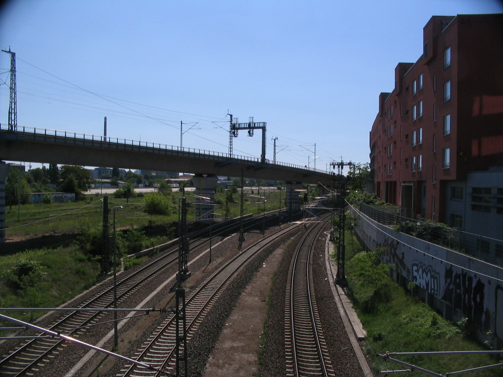 Then another right turn onto Heidestraße, whence this transverse view of the sparseness of the railroad corridor I was now paralleling.