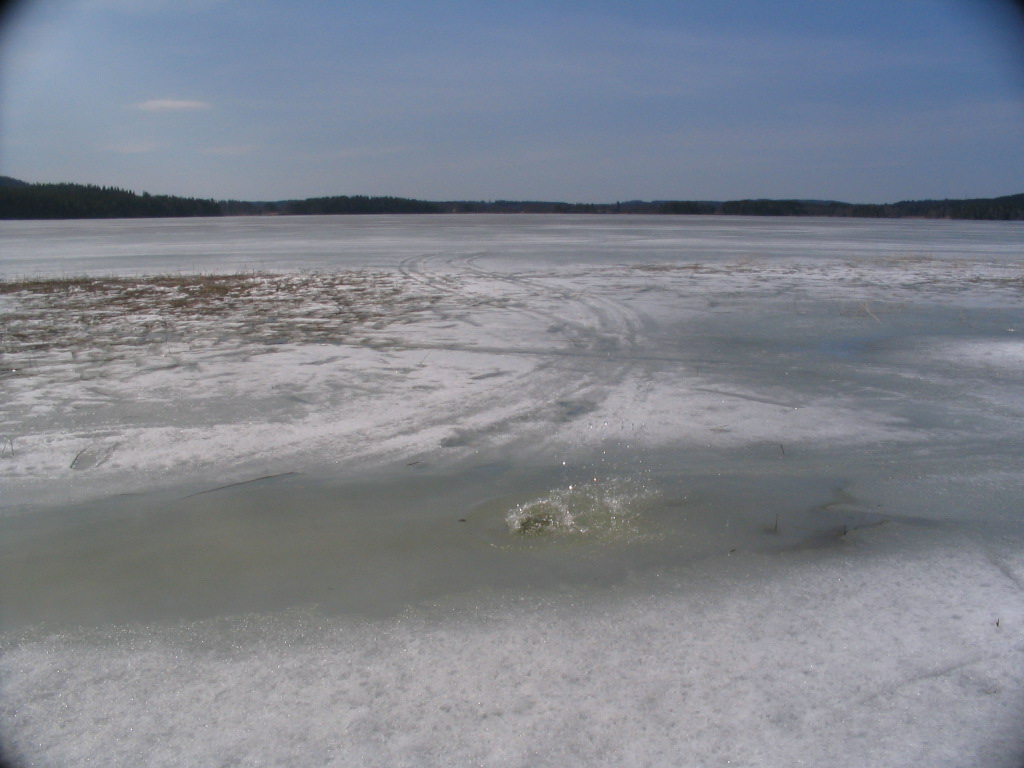 Either someone just dunked a rock in or water is splashing up from that foreground wet spot of its own accord.