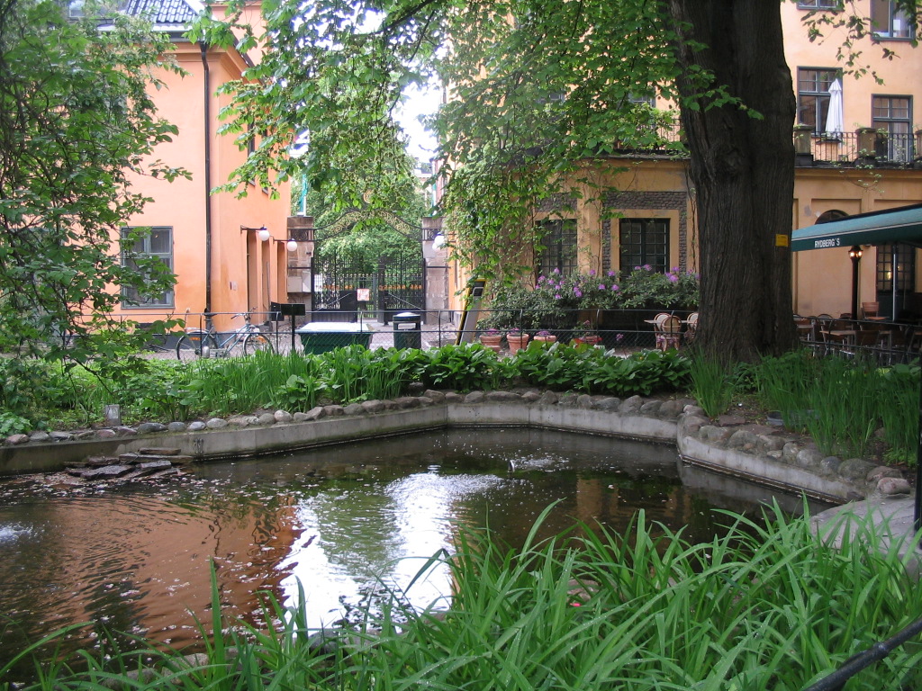 Then we ventured into an inviting courtyard/garden next to Drottninggatan, which turns out to be Centralbadet, a spa opened in 1904, one of Stockholm's most relaxing oases. This is a glimpse of the Art Nouveau main building.
