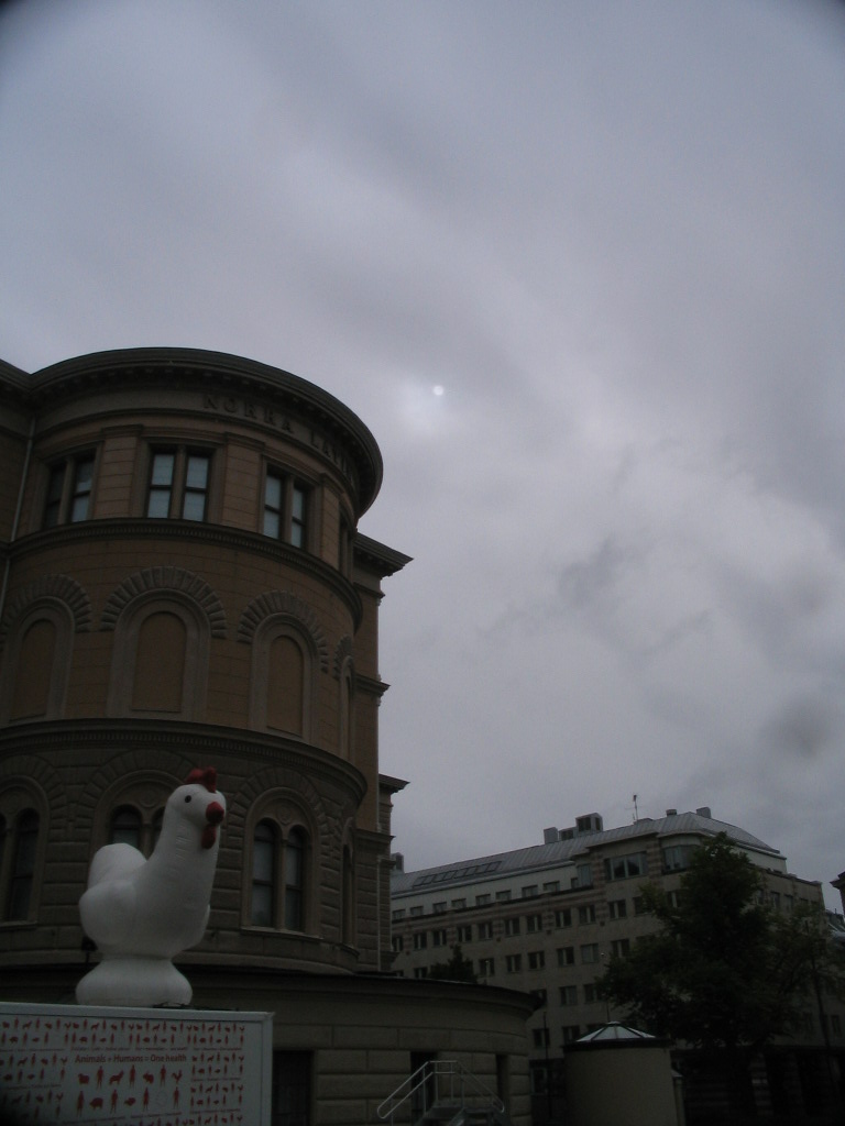 Looking a little wan there, Sun. Cheer up, there's a blowup chicken in the courtyard.