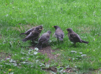 A murder of starlings (or starling-like objects) by the church. Now in...