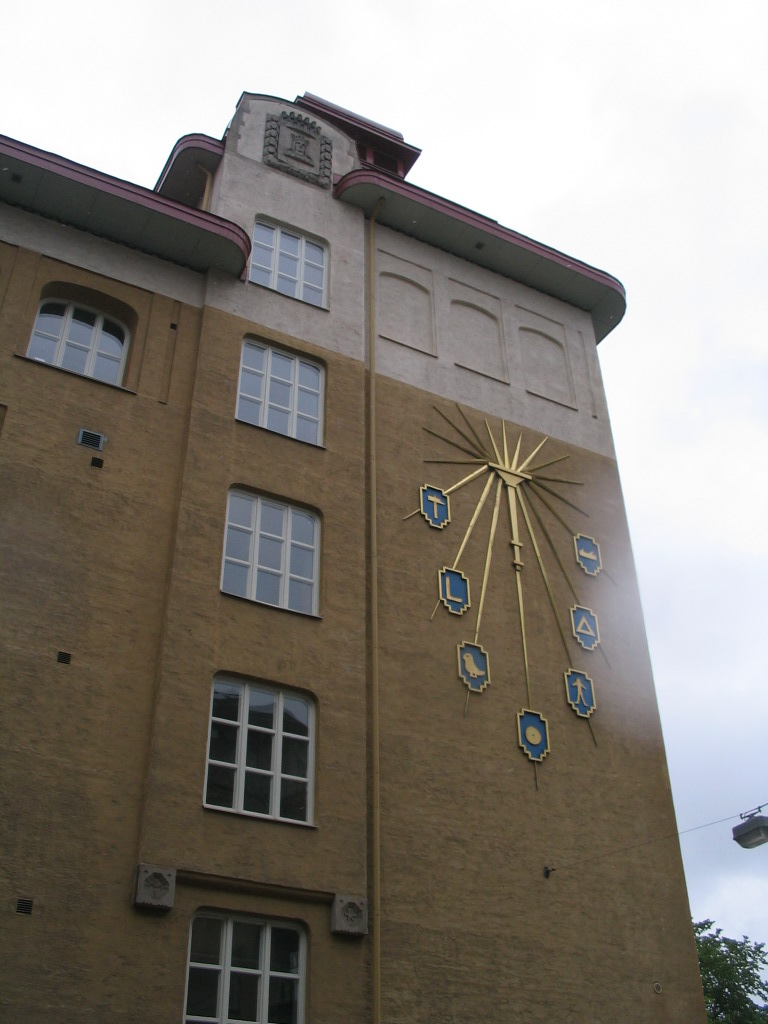 We headed south and west, back toward Cityterminalen, as James had to leave to catch a flight. This Jugendstil edifice is Adolf Fredriks skola, an elementary school, located on Rådmansgatan. I assume the symbols represent various aspects of education.