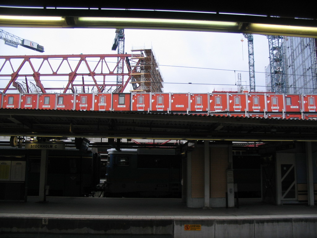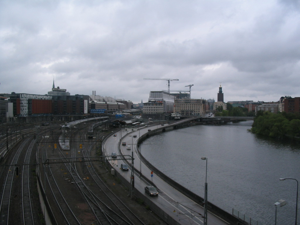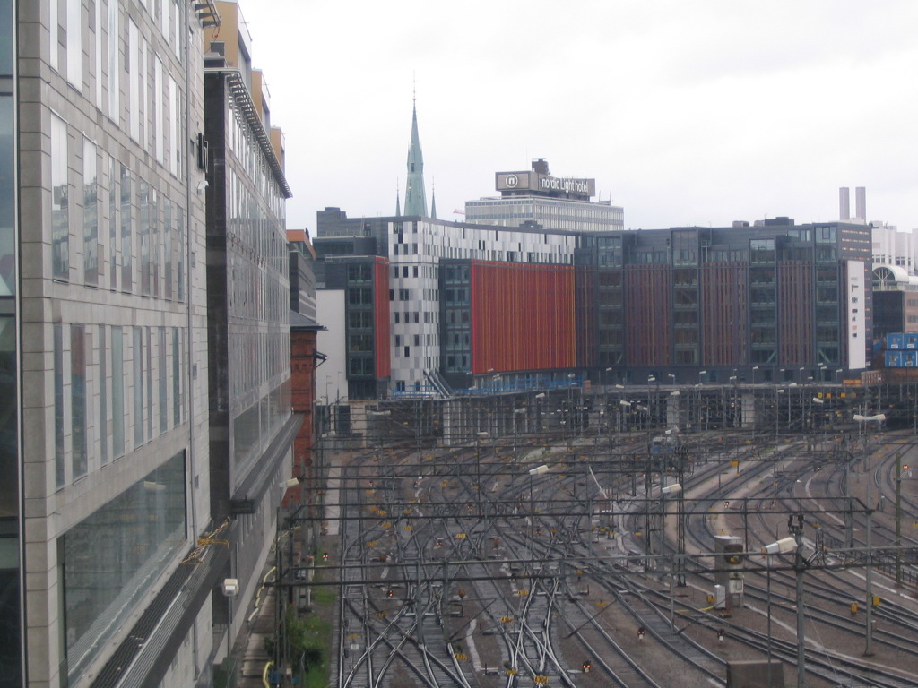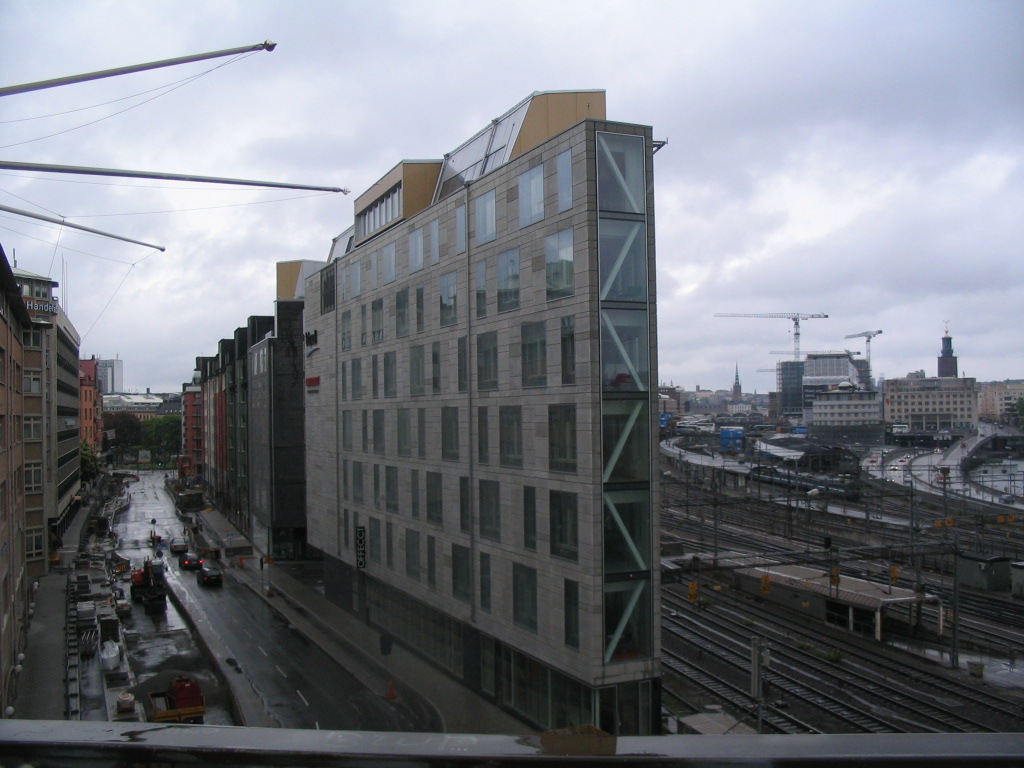 With a little bit of time to kill still, rather than heading right back to Cityterminalen, we crossed onto Kungsholmen via Barnhusbron (the Barnhus bridge), which crosses over both Barnhusviken (Barnhus Bay) and the rail tracks on the north side of the central station, on Barnhusviken's left bank. These wedge buildings by the tracks appeared brand new.