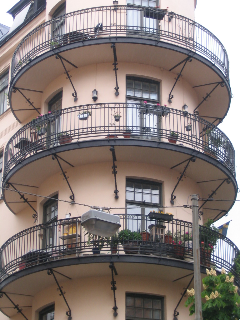 Nice rounded building-end balconies like the Apteekki on Katajanokka. This is at the corner of Kungs- and Kungsholmsgatan.