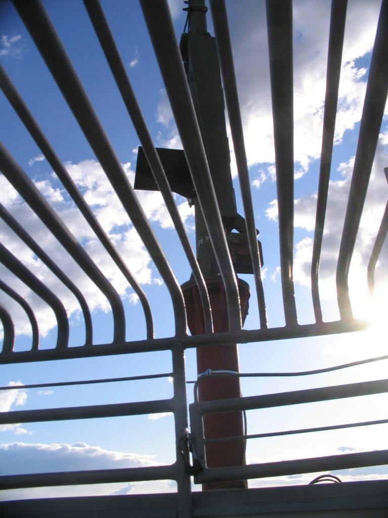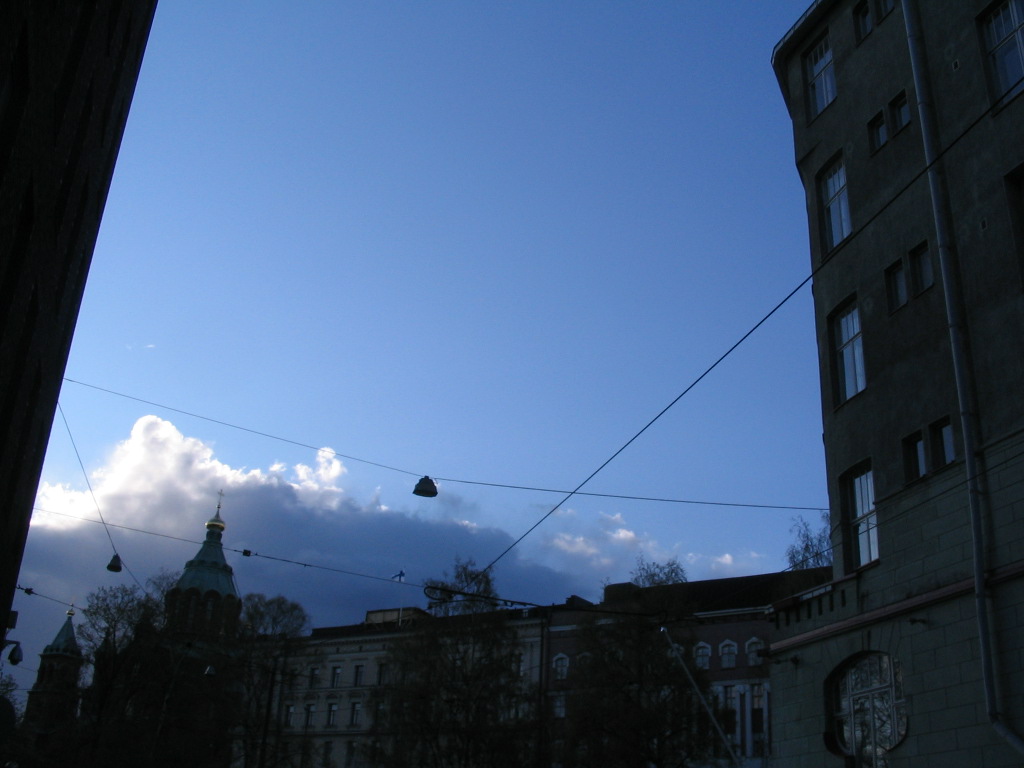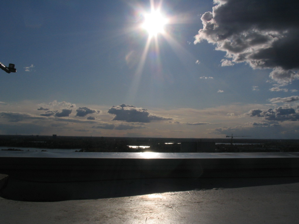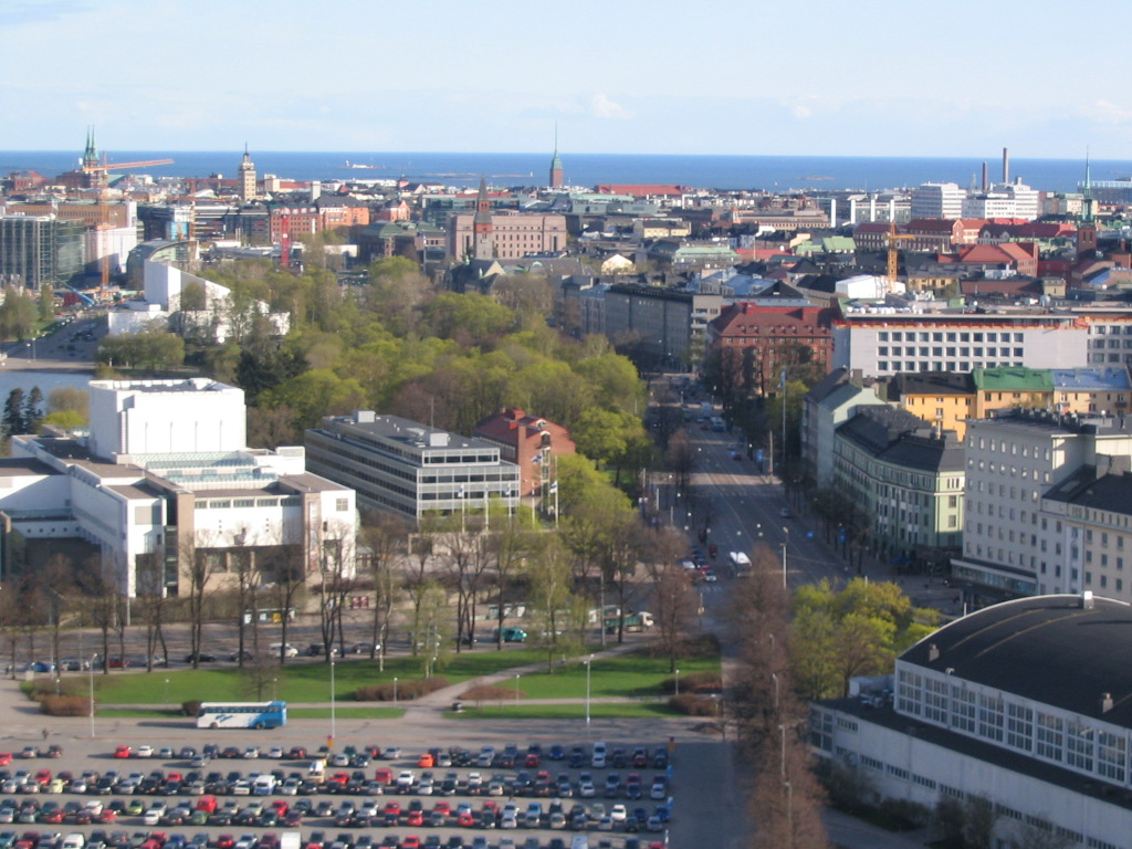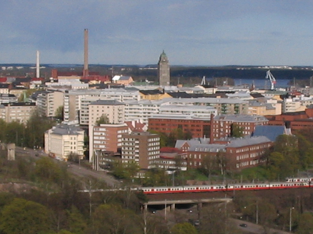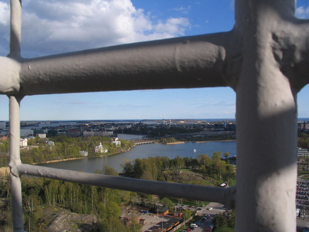At the top of the tower: looking out toward Katajanokka. Can you see the cathedrals?