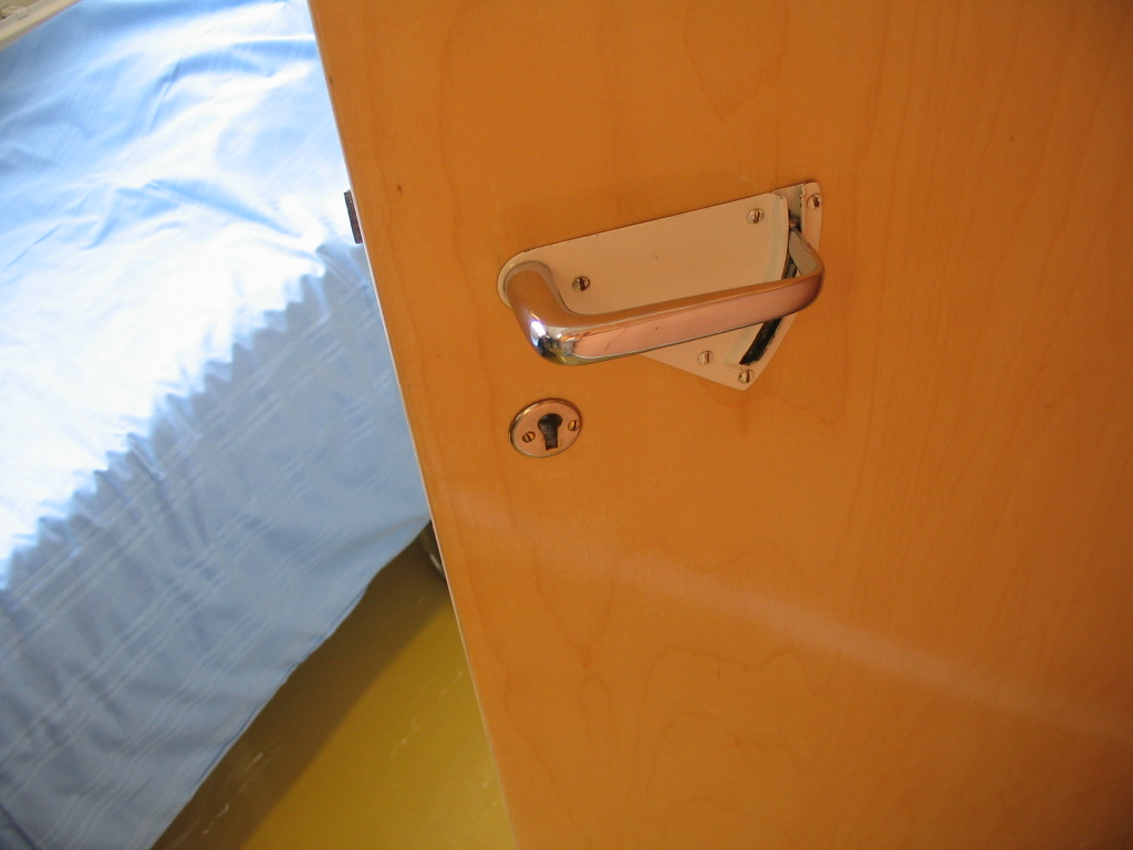 The handles to the patients' rooms were designed to avoid getting sleeves caught on them.