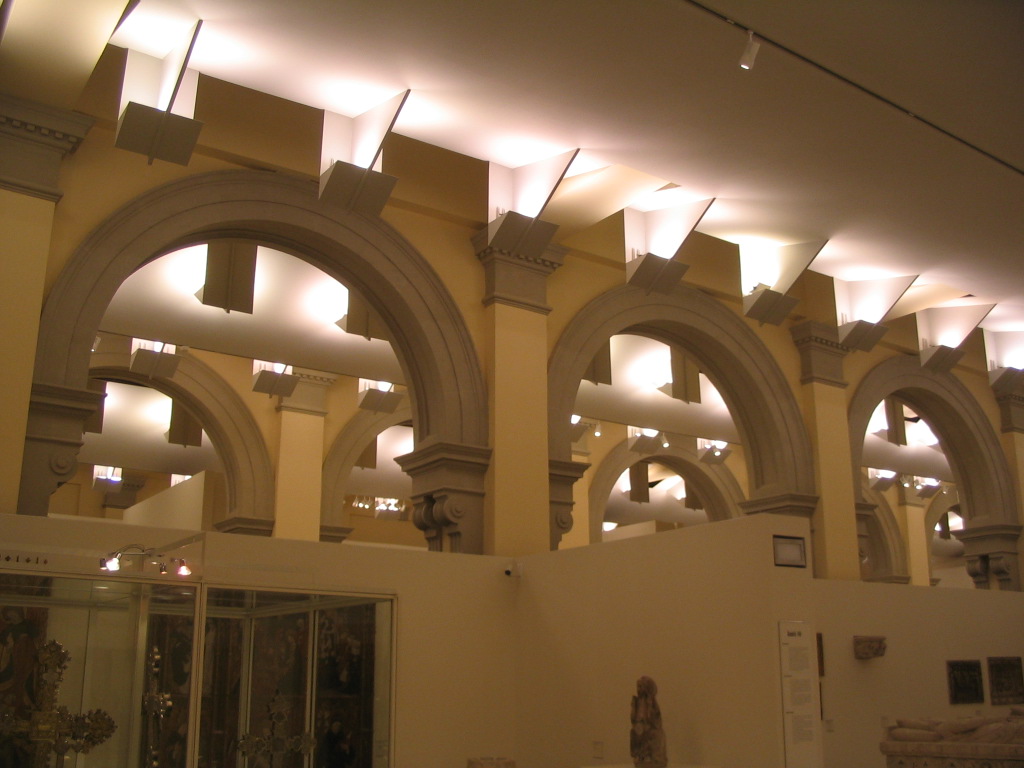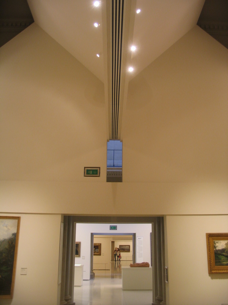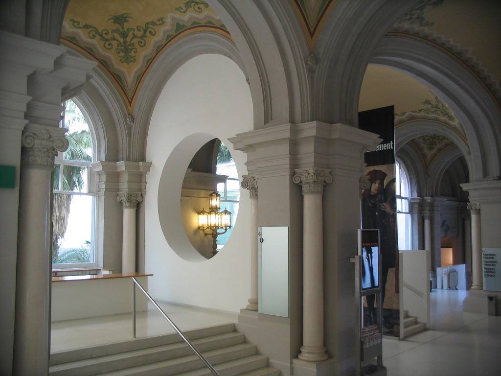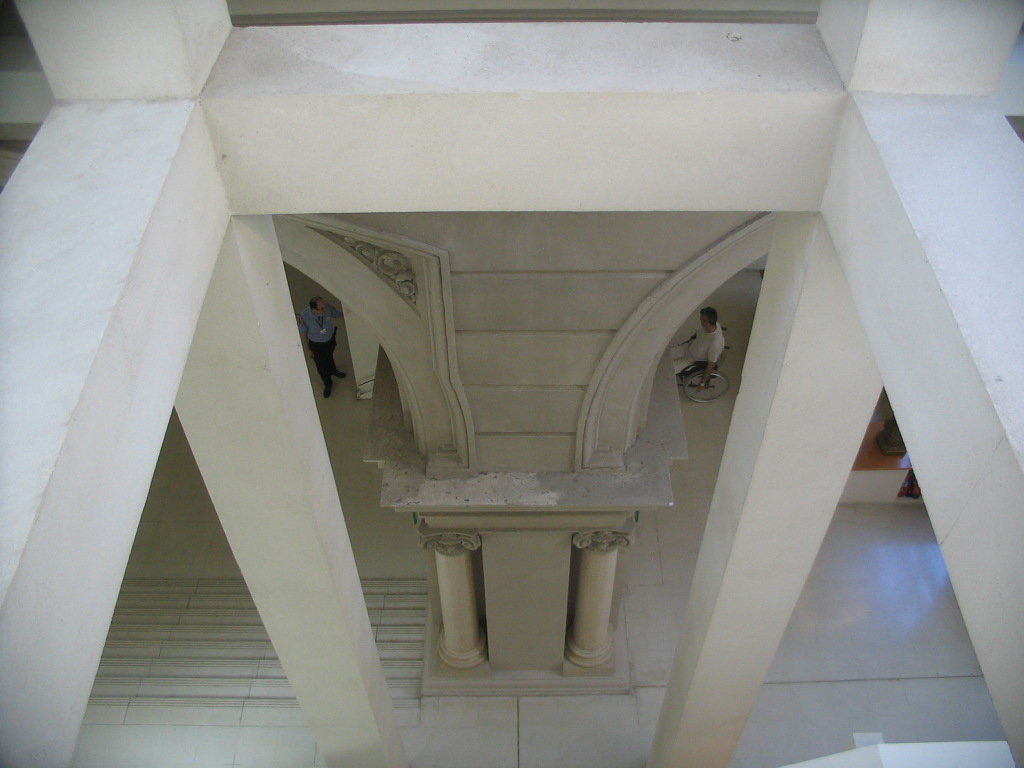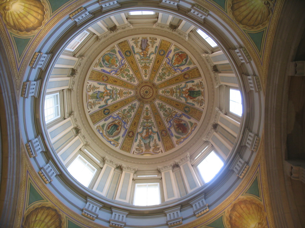 The underside of the balcony by the organ in the Great Hall, rather calmer than the coffered dome beyond.