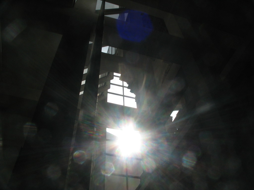 Through the little beam window appears to be an exterior space. An exterior space of mystery.