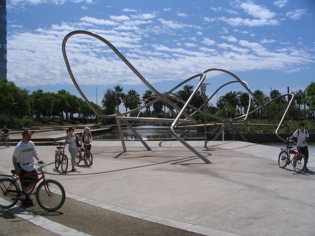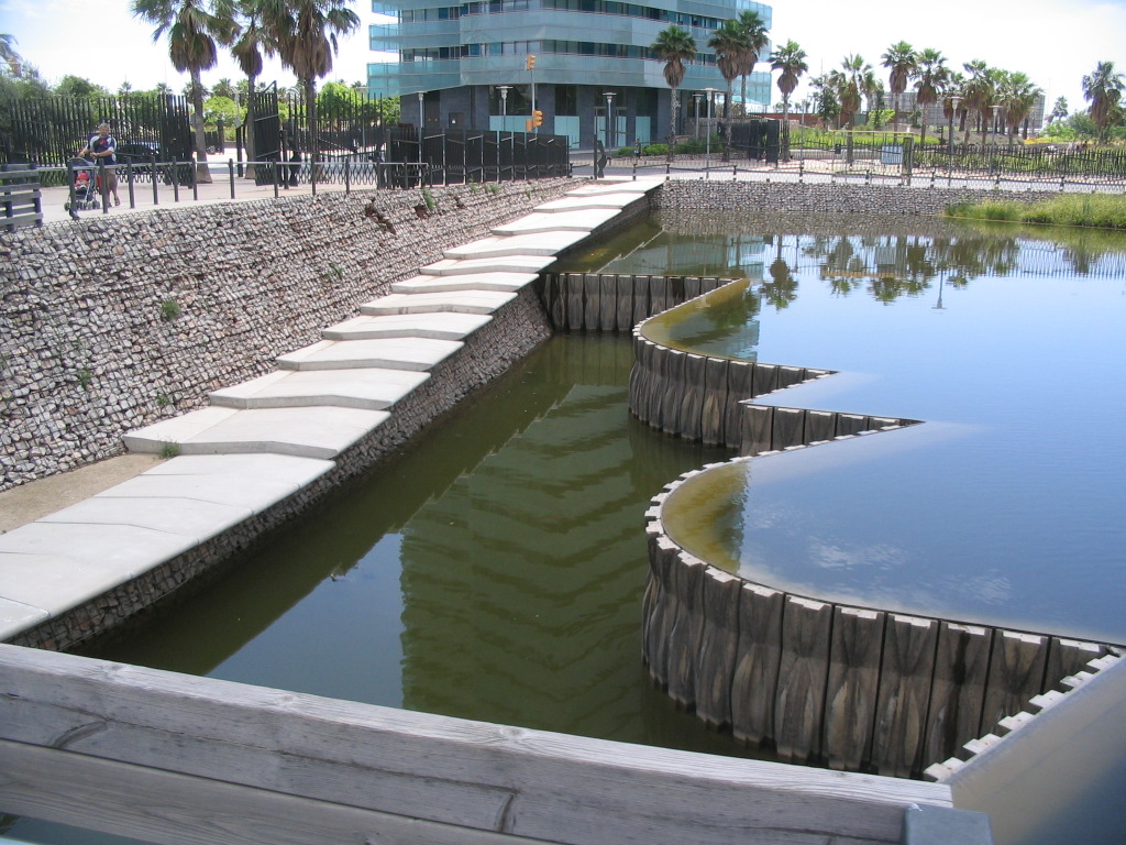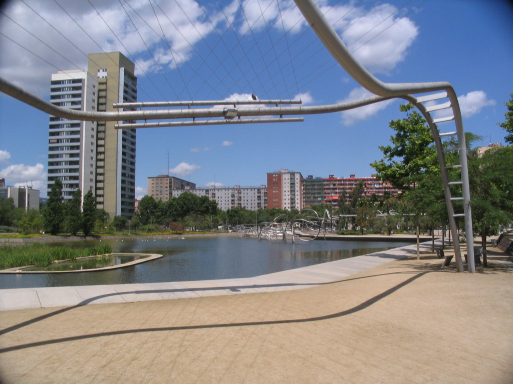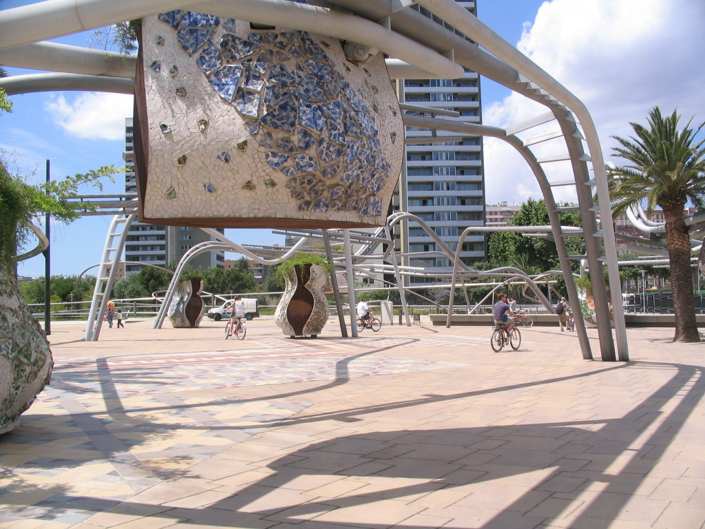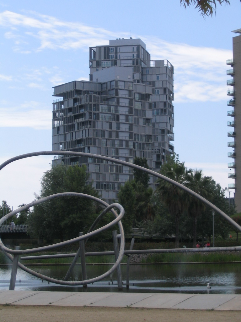 Further up the shore is the Parc de la Diagonal Mar, also designed by Miralles, and by his later partner and wife, Benedetta Tagliabue, and constructed in 2002. The Diagonal Mar area is so named ever since its redevelopment starting in the '90s, because it's where the long Avinguda Diagonal, which cuts east-northeast across the whole city, meets the sea.