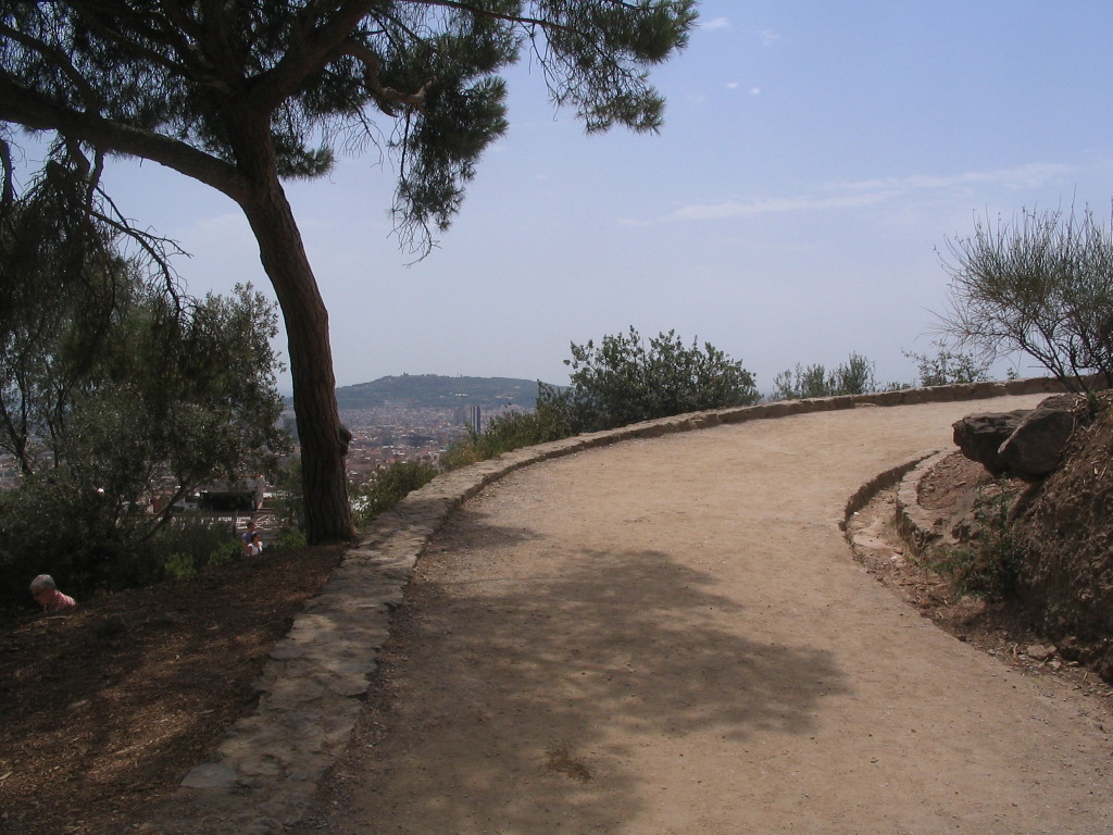 Rounding up to the highest hilltop in the Park, with Montjuïc just visible.
