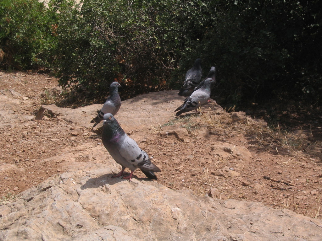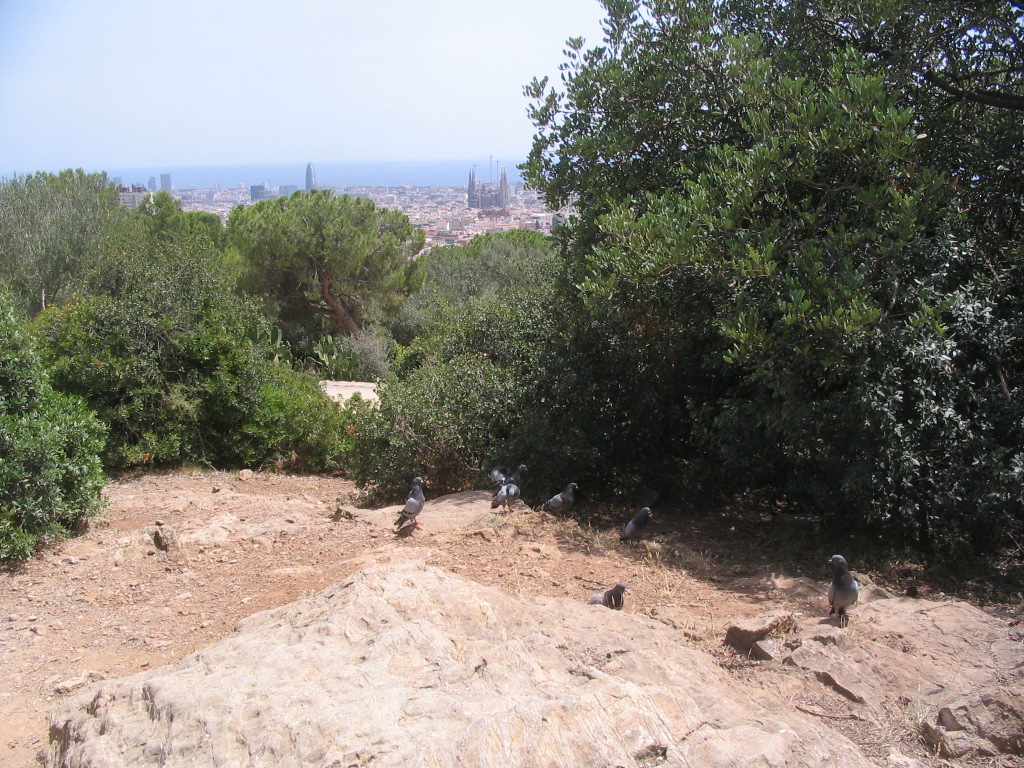 A colony of pigeons, and further out, the Sagrada Família and the Torre Agbar.