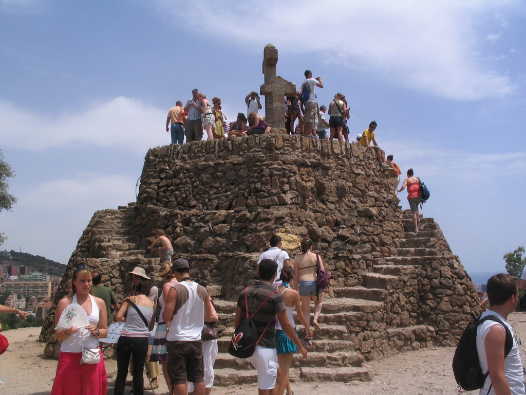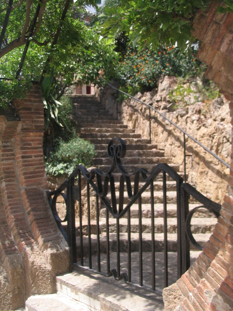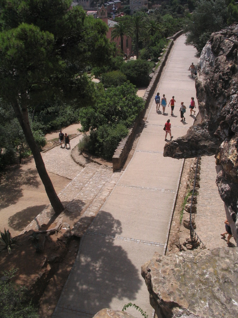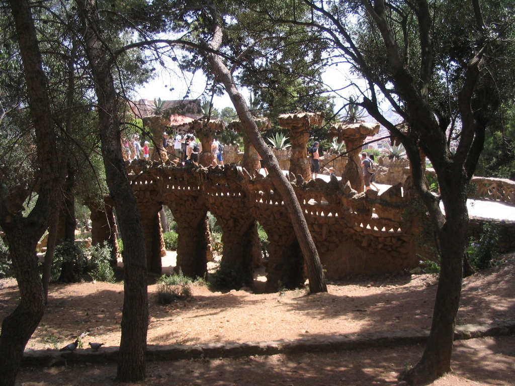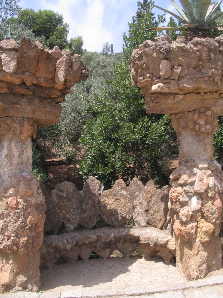 Park Güell was built between 1900 and 1914. It's a Gesamtkunstwerk, with architecture blending in with exterior structures, which blend in with the landscape, partly thanks to Gaudí's penchant for structures and forms mimicking nature.
