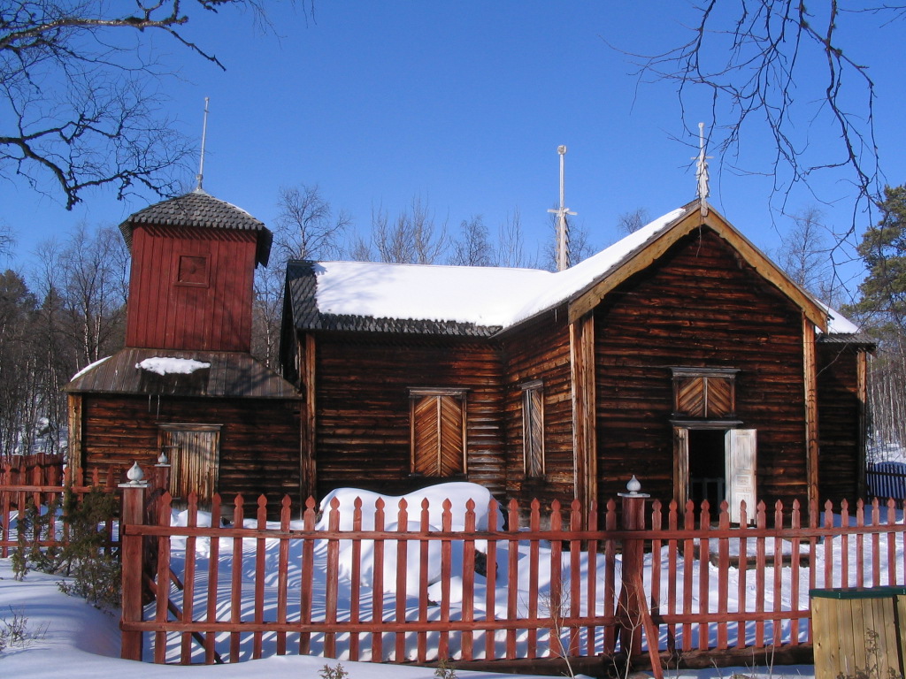 Several kilometers later, we arrived at the clearing of the Pielpajärvi church. According to outdoors.fi, the church is one of the oldest buildings in Lapland, completed in 1760, on the site of an older church from the 17th century. Pielpajärvi was a winter village for the residents of Inari back in the day.