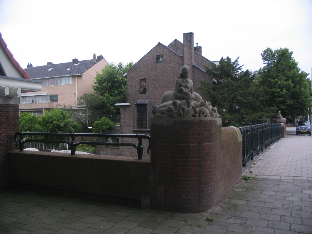 Back at the Churchilllaan bridge over the Boerenwetering, the southern side of which is capped at each end by a statue of a child tending to a pile of animals: here a girl with squirrels, and at the other end, just visible at right, a boy with rabbits. (Edit: looks like some bunnies may have insinuated themselves in with the squirrels over here too.)