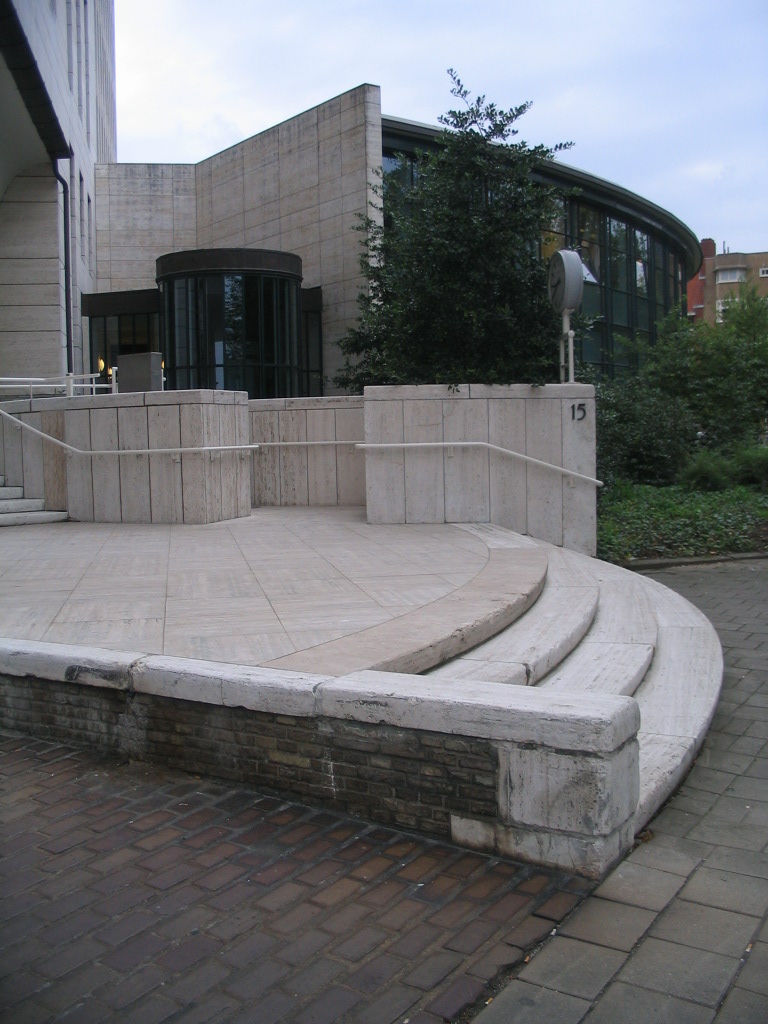I continued the route from the Victorieplein in the most obvious way and turned onto Rooseveltlaan, mirroring the approach on Churchilllaan. Here in the southeastern corner of the Victorieplein, a mysterious turning and disappearing stair, which I find very compelling.
