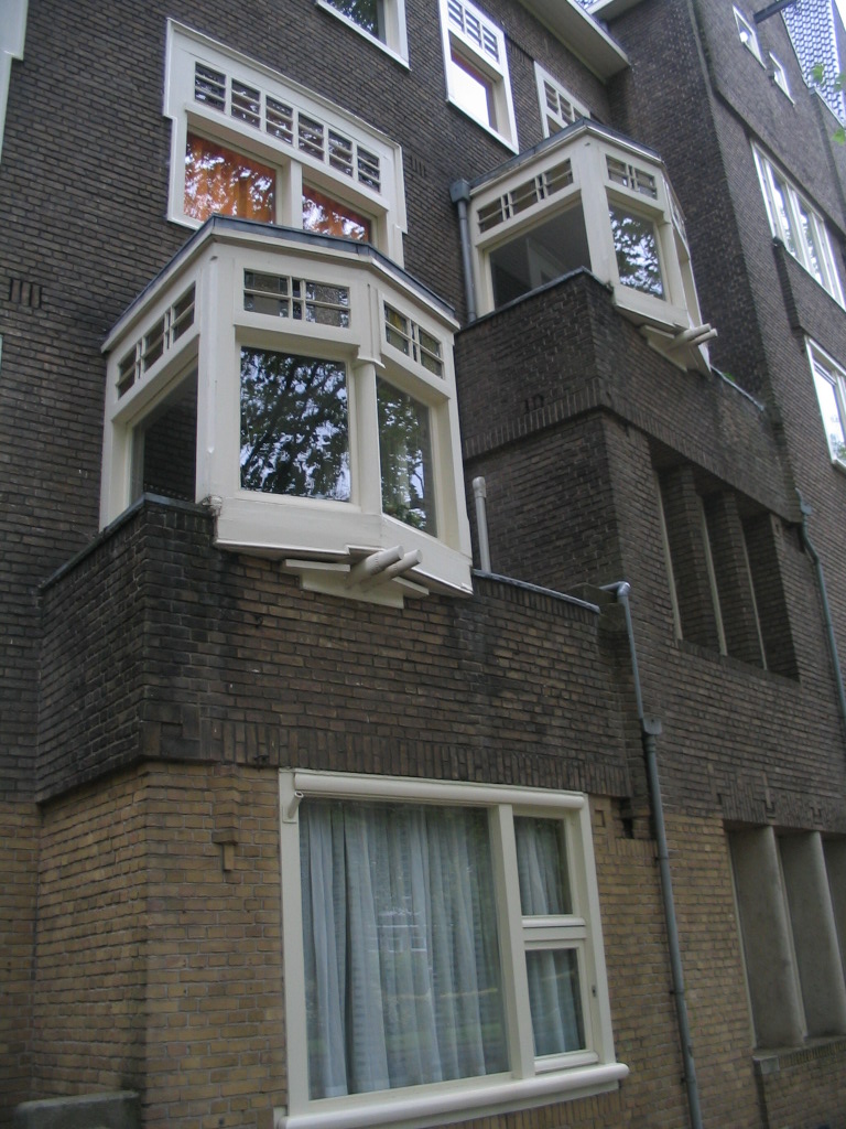 On Apollolaan across from Mozartkade, a most excellent stepped pair of fanciful bay windows.