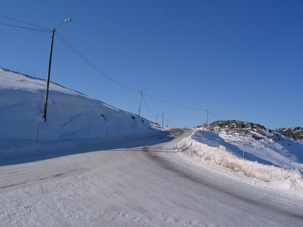 We headed down to the harbor, further east on the mainland, on our quest. This, meanwhile, is the road out to the rest of the world, toward the west.