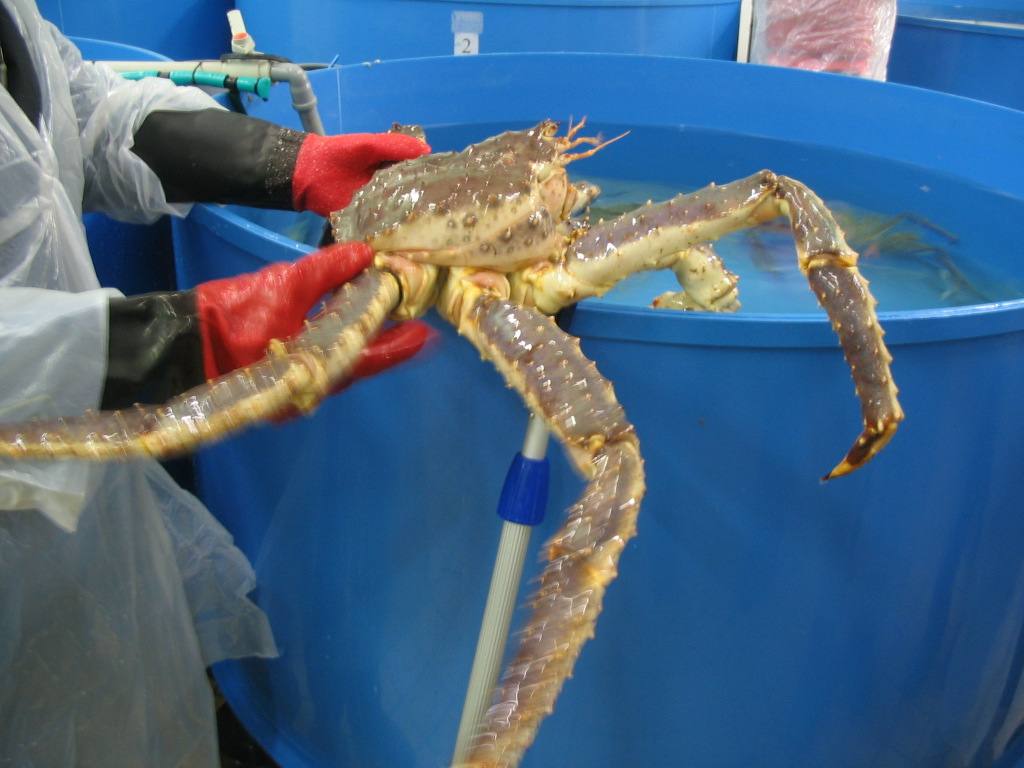 We also got a treat: a tour of the crab research facility, led by the two Russian scientists working there. They were investigating what factors affect the growth and health of the crabs, for cultivation purposes.