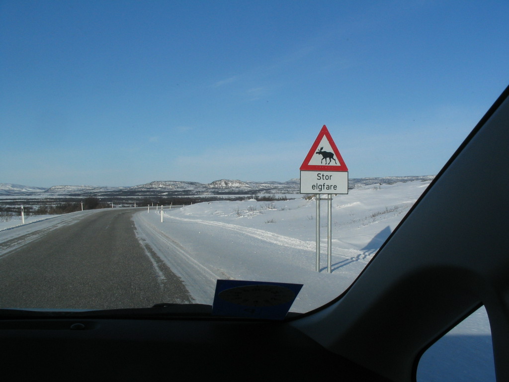 "Large elk hazard." At this point we had turned back inland.