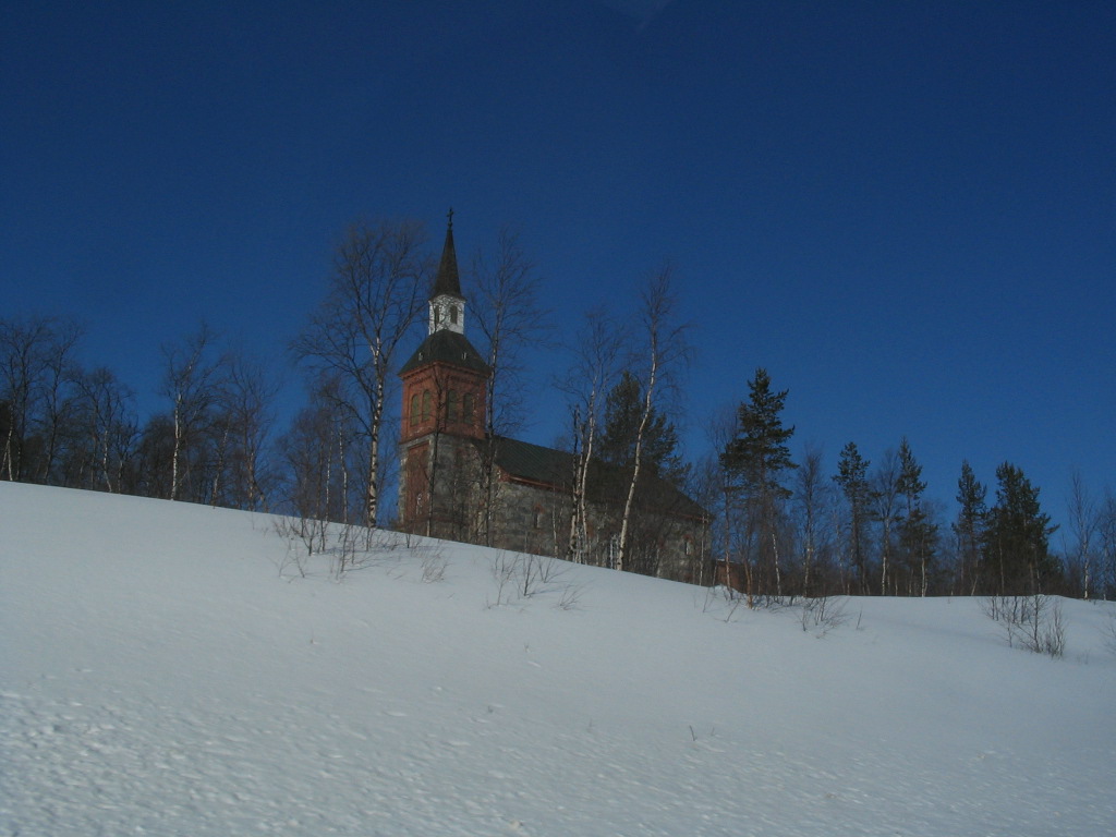 Utsjoki has this old church, from the mid-19th century, which is well known, and it was visible from the highway for a few fleeting moments, during which time I was able to snap it.