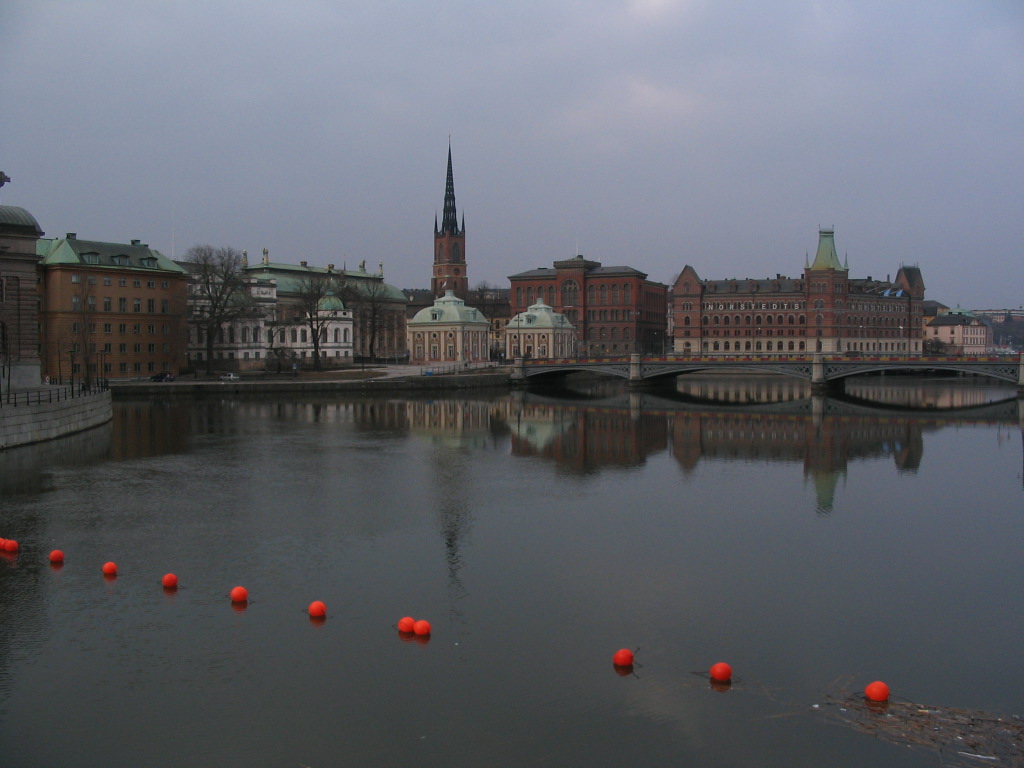 Looking across toward Riddarholmskyrkan, with Riddarhuset in front of it.