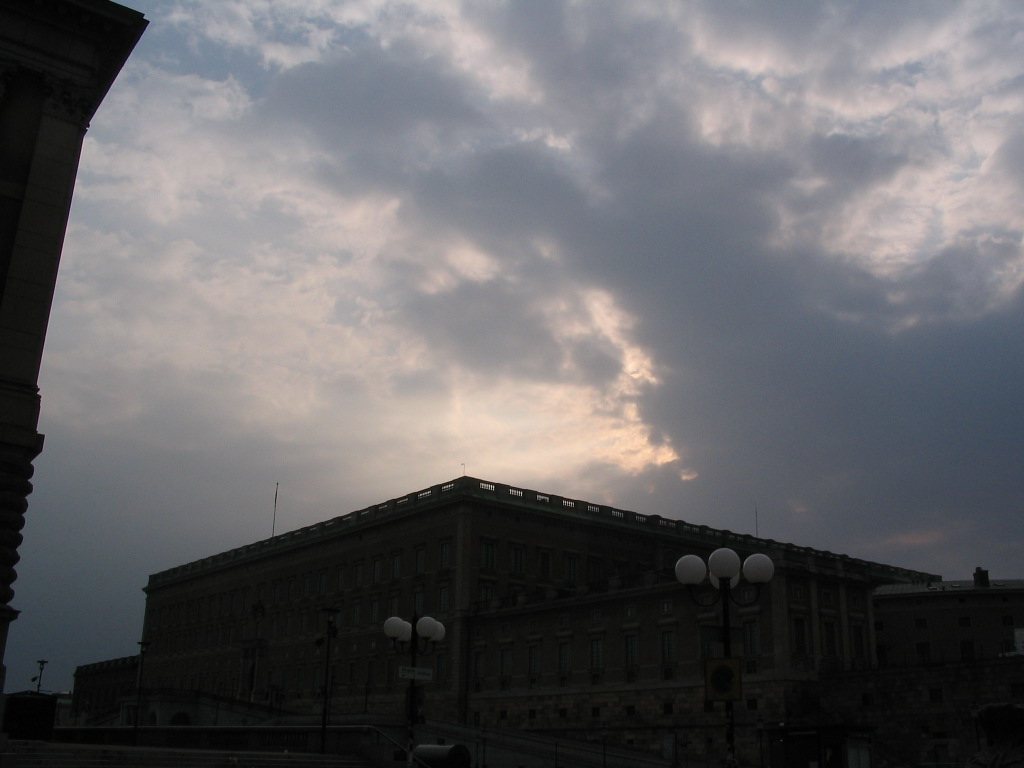 A baroque cloud morning matching the barocity of the architecture. That's Kungliga Slottet below. The clouds portended sprinkles.