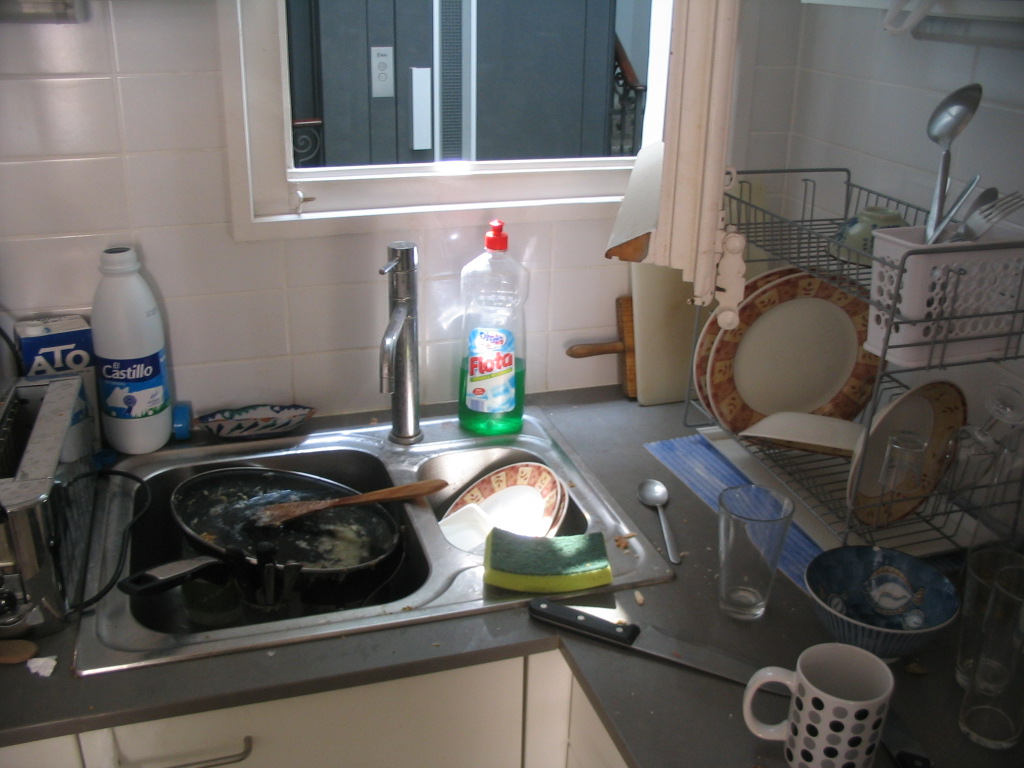 The beam made it all the way to the sink and counter. (Just look at the sunbeam. Never mind the mess.)