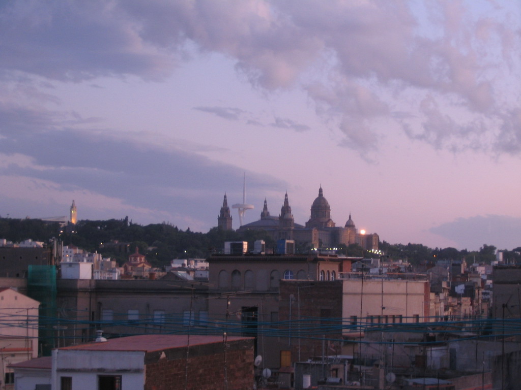 Behind the Palau Nacional you can see the Olympic stadium tower, almost blending in with the sky colors.