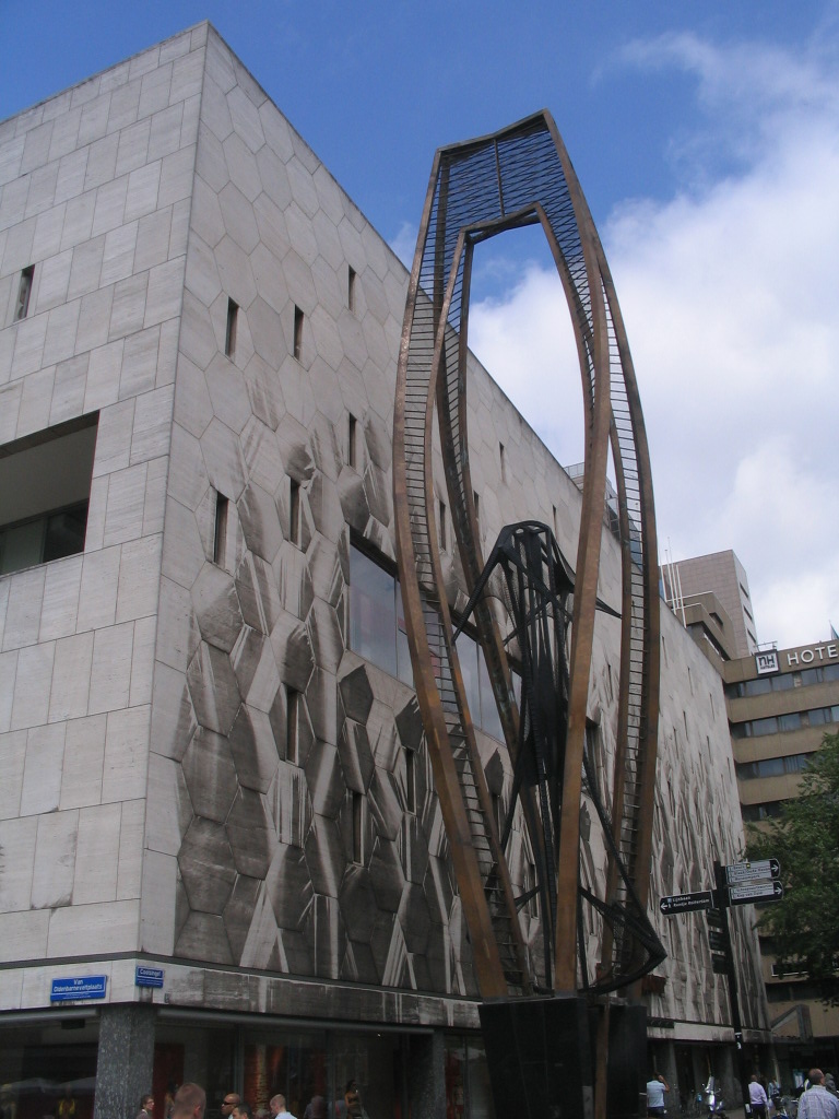 Right next to De Bijenkorf is the fanciful-yet-mathematical Gestileerde bloem (Stylized Flower) by the Constructivist sculptor Naum Gabo, created in 1957 for the rebuilt Bijenkorf.