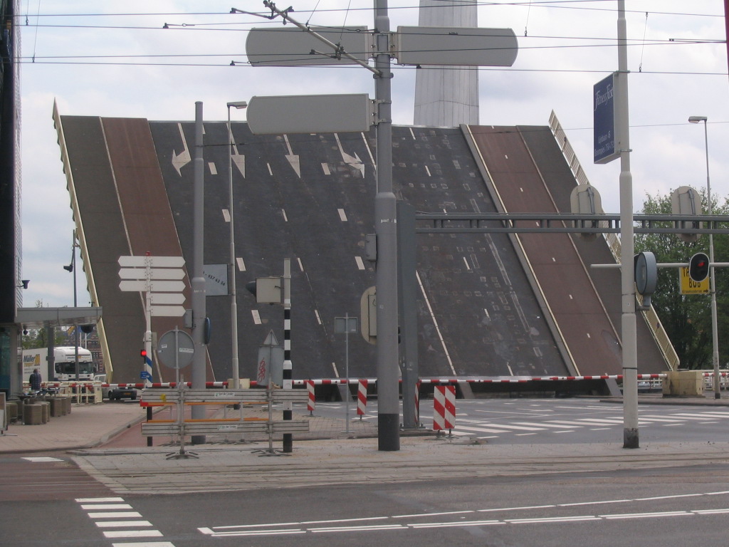 Meanwhile, across the way, the Nieuwe Leuvebrug lifted up just like the top of a school desk. A huge school desk with roads on it.