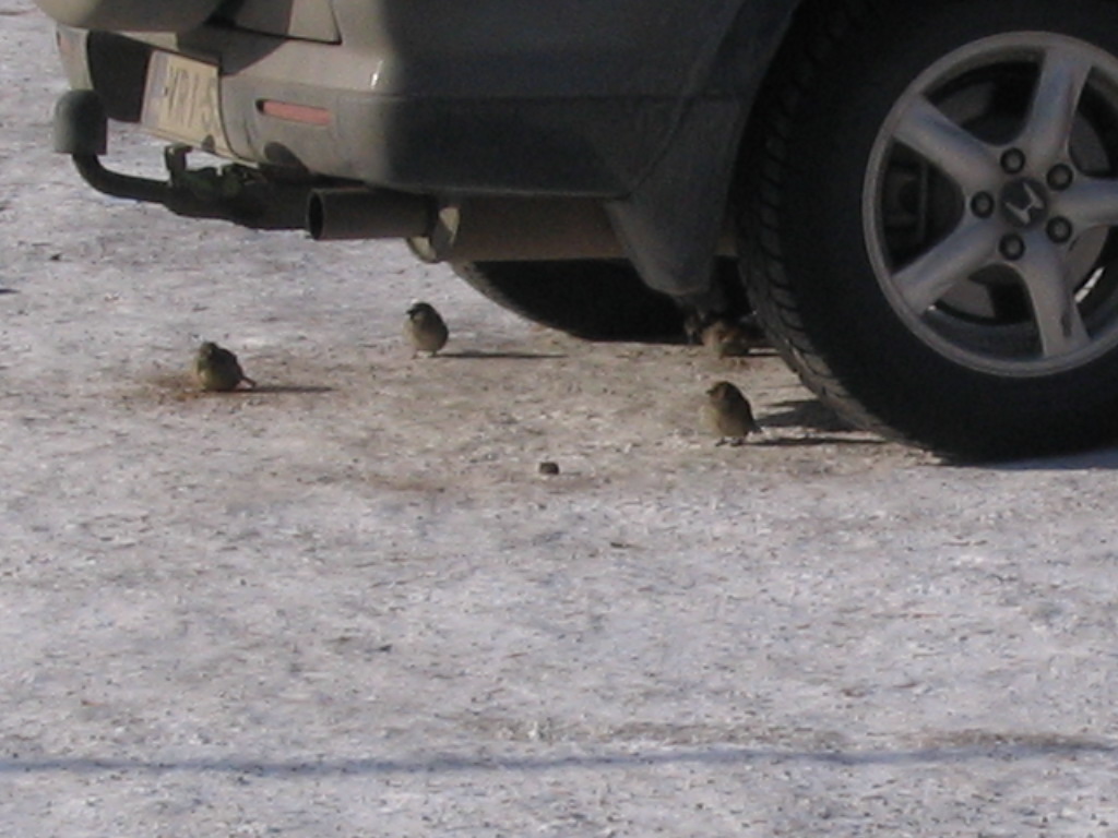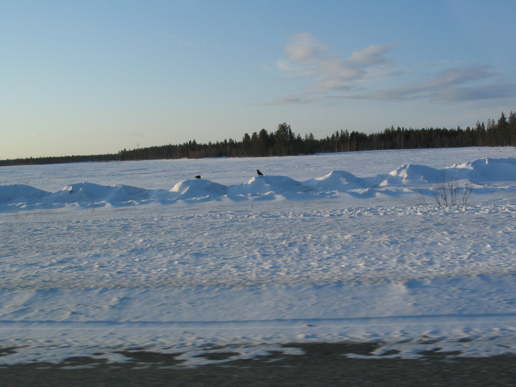 We were lucky to have sunny weather just about the whole time. The crows (ravens?) were pleased with this situation as well. We did have to deal with a fair amount of snow drifting across the road.