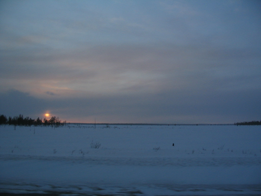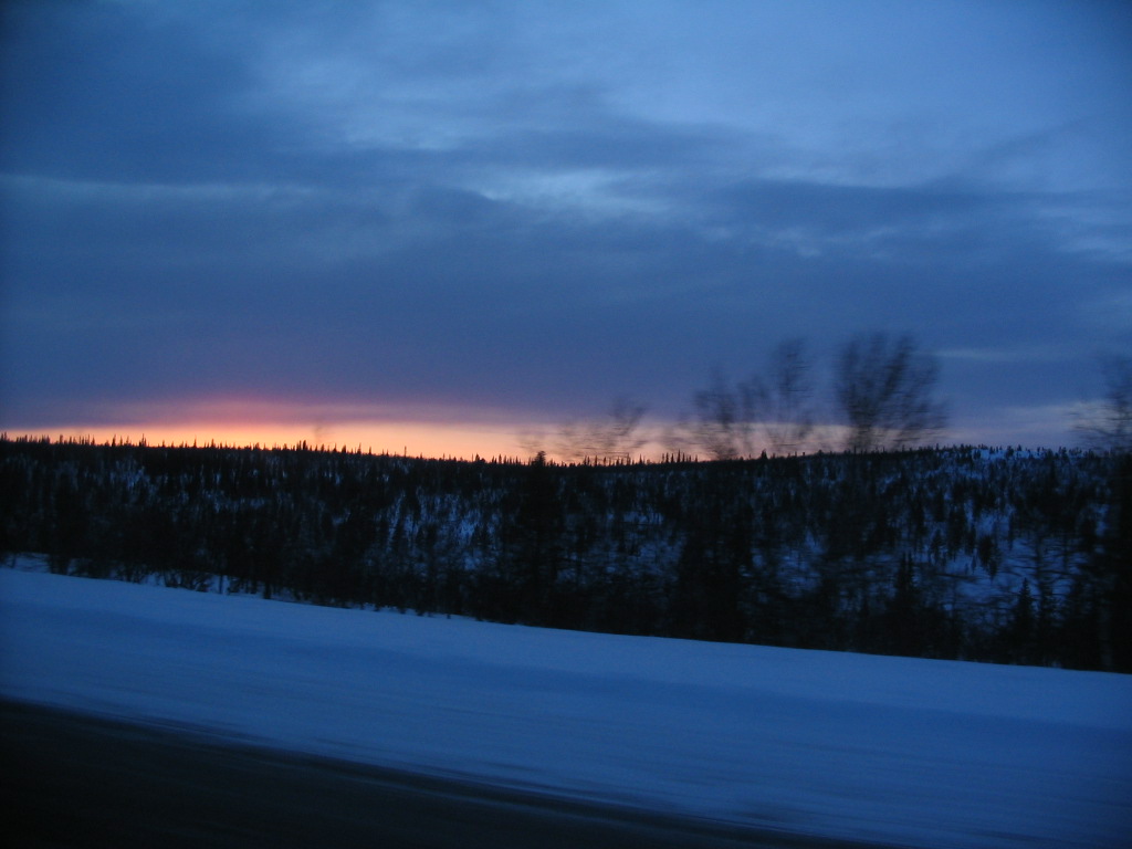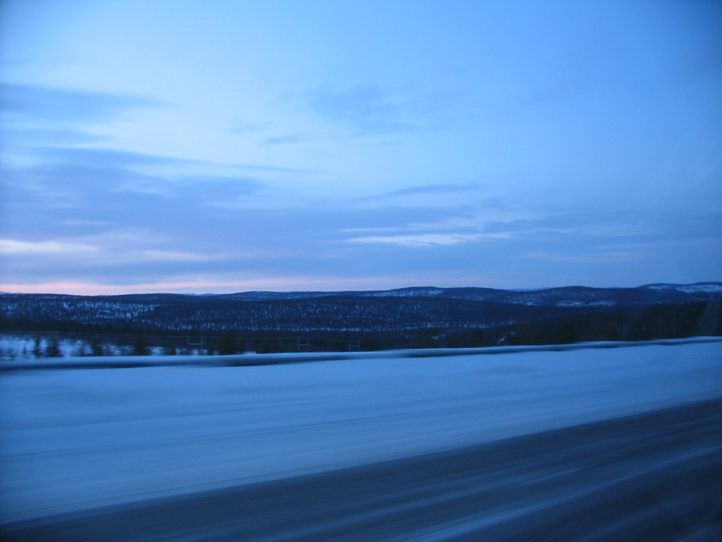 Now on the road toward Inari. We rented two small cars in Rovaniemi for the expedition.