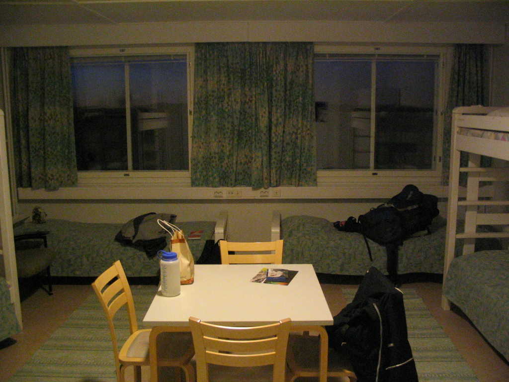 In Inari we stayed at a hostel, Vasatokka, a few miles up the road, on a lake called Mutusjärvi. The accommodations were wonderfully spacious; only two of us shared this whole room.