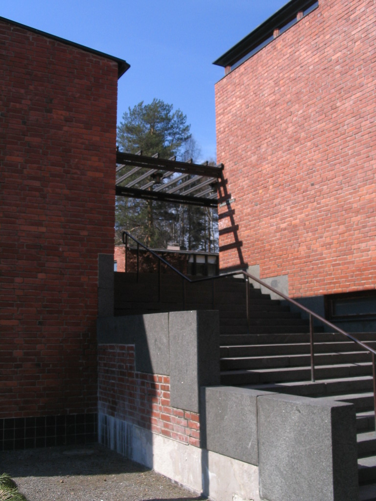 Like that stairway in the Jyväskylä U building, the Town Hall was inspired by Italian hill towns; its courtyard, up at the top of these front stairs, is well higher than the surrounding land.