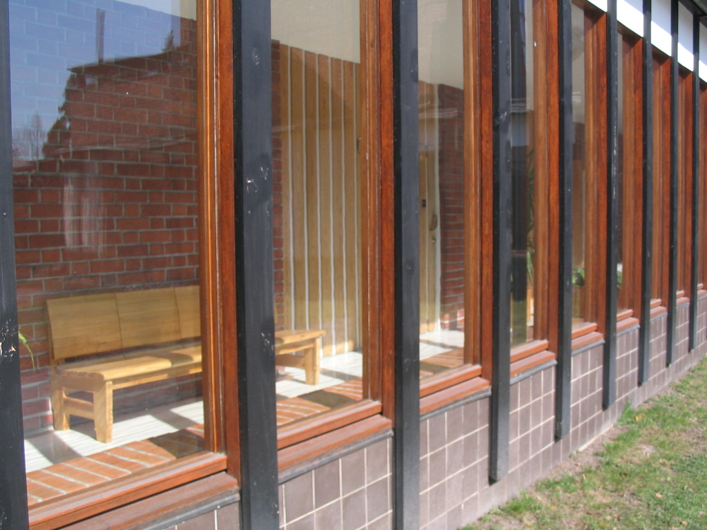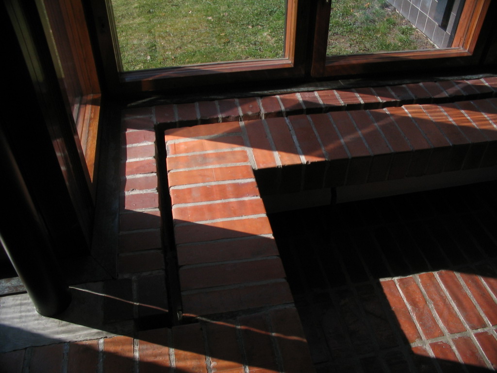 Nice thermal-mass benches in the corridor, just thermally massing in the sun.